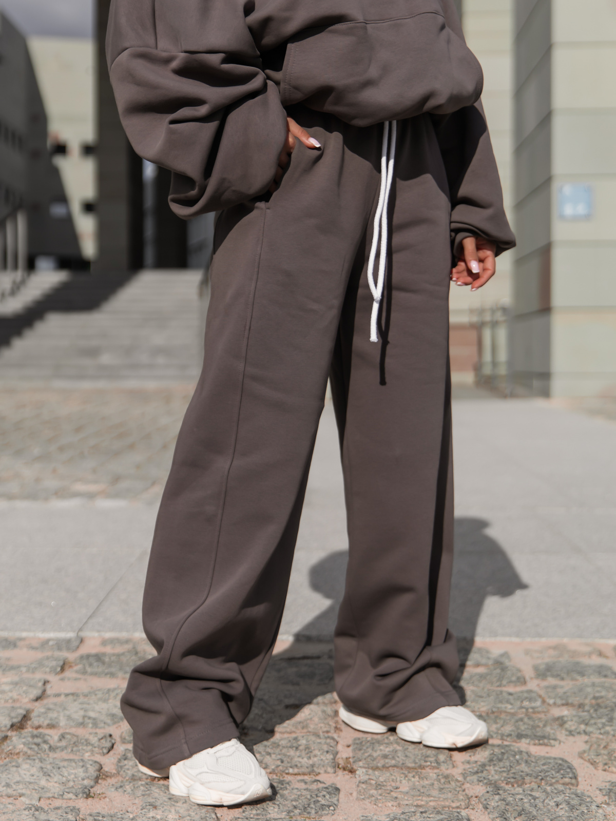 Luźne spodnie z gumką w pasie. Uszyte z bawełnianej dzianiny dresowej drapanej od wewnątrz, dzięki czemu jest przyjemny w noszeniu. Materiał premium od polskiego producenta. Materiał ten nie tylko otula ciepłem, ale również pozwala skórze oddychać, co czyni je świetnym wyborem na każdą porę roku. Stonowane kolory i minimalistyczny design sprawiają, że można je łatwo łączyć z ulubionymi T-shirtami, bluzami czy nawet eleganckimi dodatkami dla efektu "sportowej elegancji".