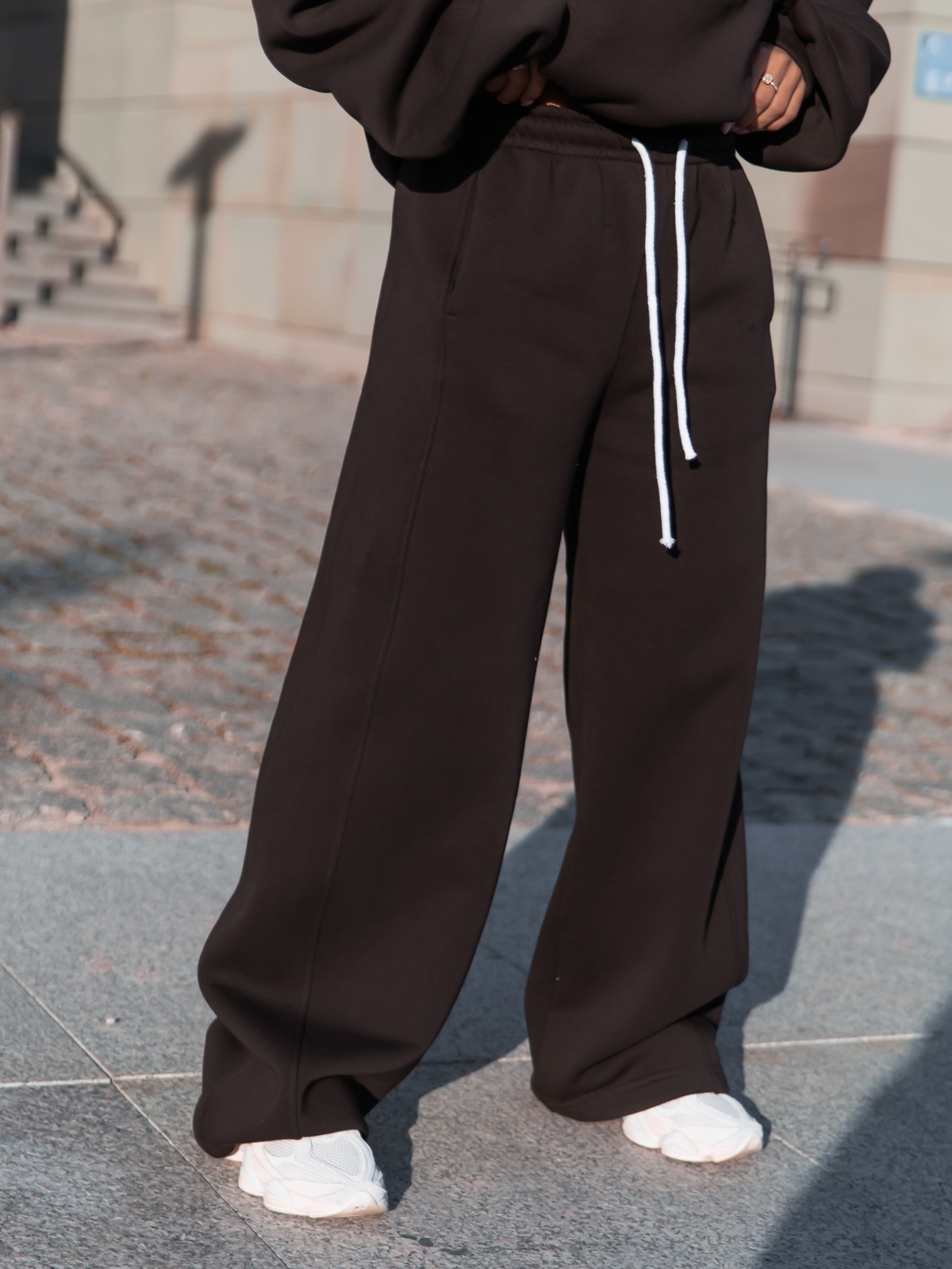 Luźne spodnie z gumką w pasie. Uszyte z bawełnianej dzianiny dresowej drapanej od wewnątrz, dzięki czemu jest przyjemny w noszeniu. Materiał premium od polskiego producenta. Materiał ten nie tylko otula ciepłem, ale również pozwala skórze oddychać, co czyni je świetnym wyborem na każdą porę roku. Stonowane kolory i minimalistyczny design sprawiają, że można je łatwo łączyć z ulubionymi T-shirtami, bluzami czy nawet eleganckimi dodatkami dla efektu "sportowej elegancji".