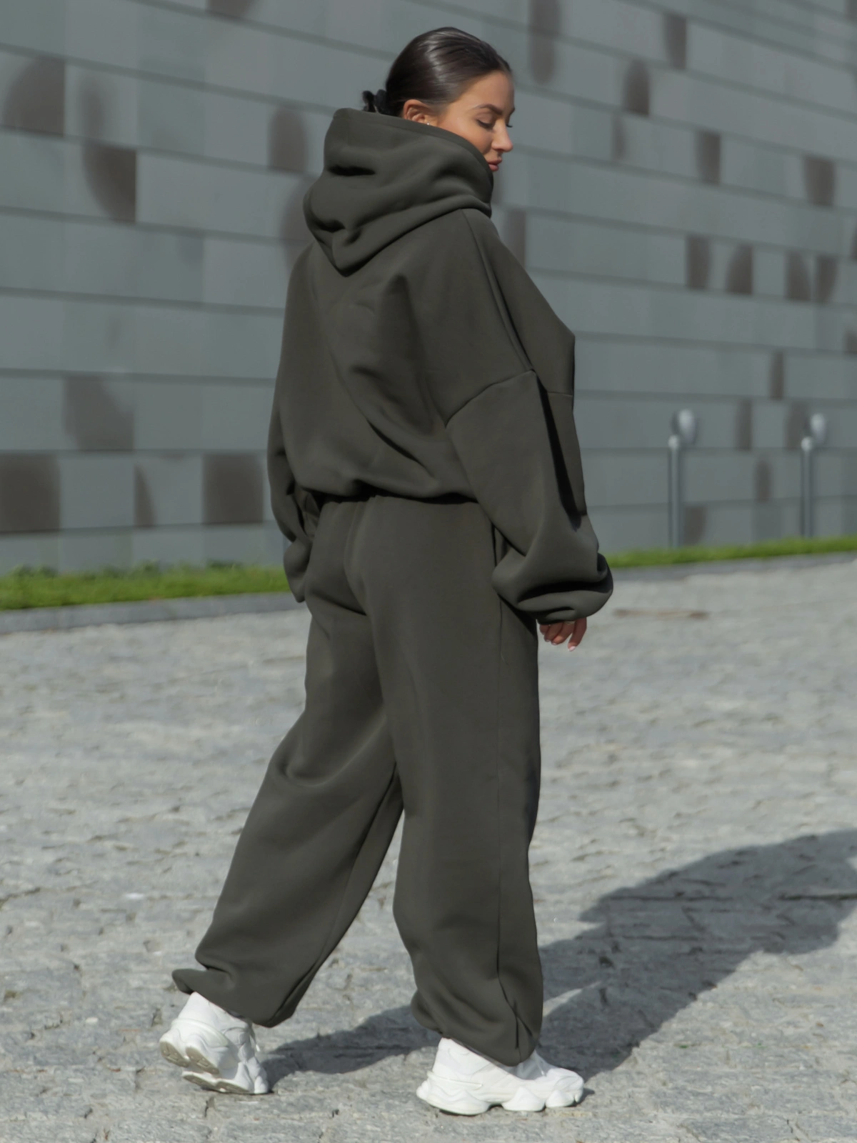 Dresowe bawełniane SPODNIE baggy dark khaki E643 k01