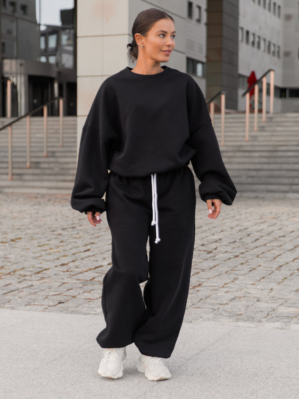 Dresowe bawełniane SPODNIE baggy niski stan czarne X403