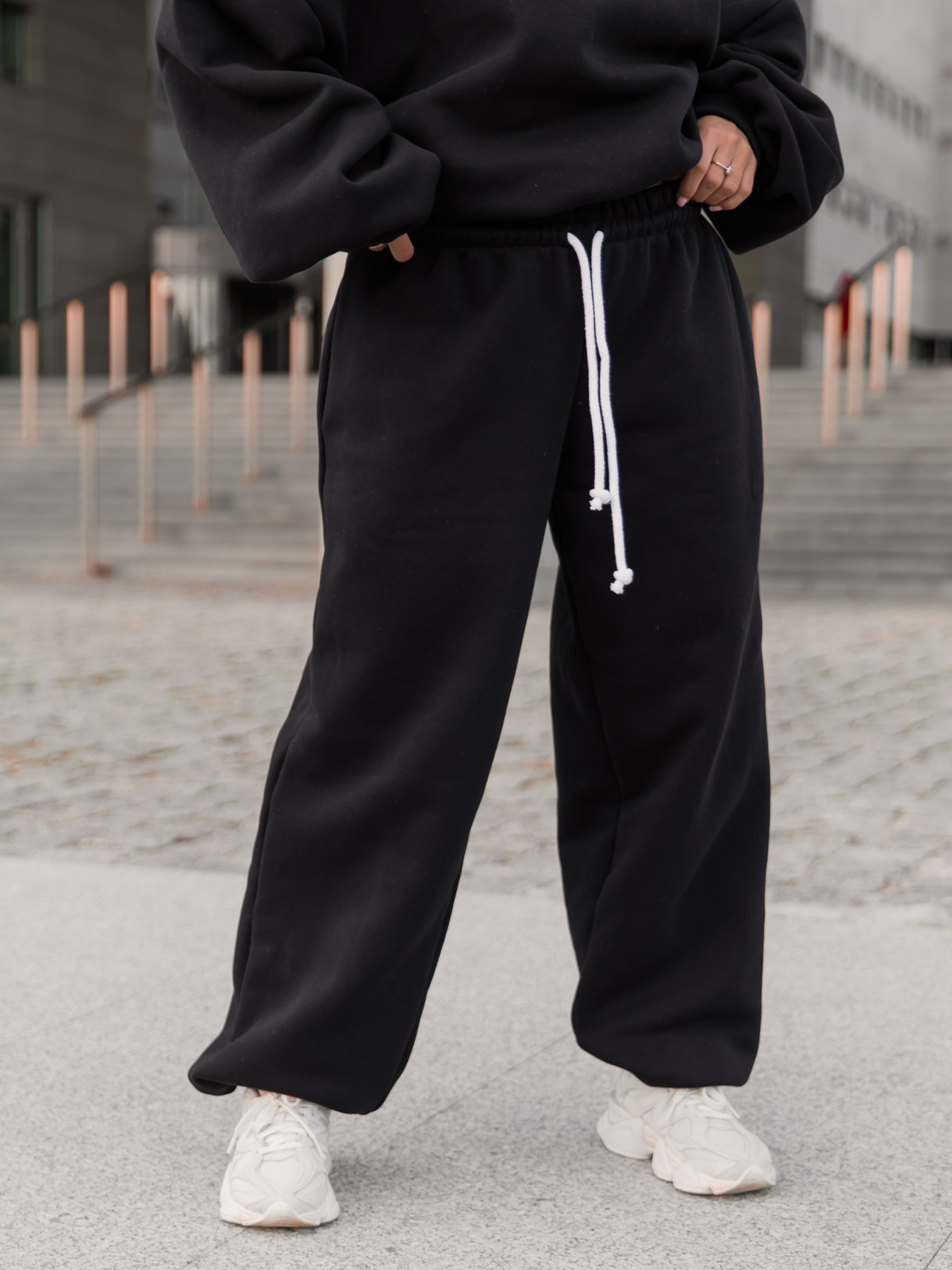 • Luźne spodnie z gumką w pasie i na nogawkach. Z niskim stanem , z kontrastowym sznurkiem . Uszyte z bawełnianej dzianiny dresowej drapanej od wewnątrz, dzięki czemu jest przyjemny w noszeniu. Materiał Najwyższej jakości od polskiego producenta.