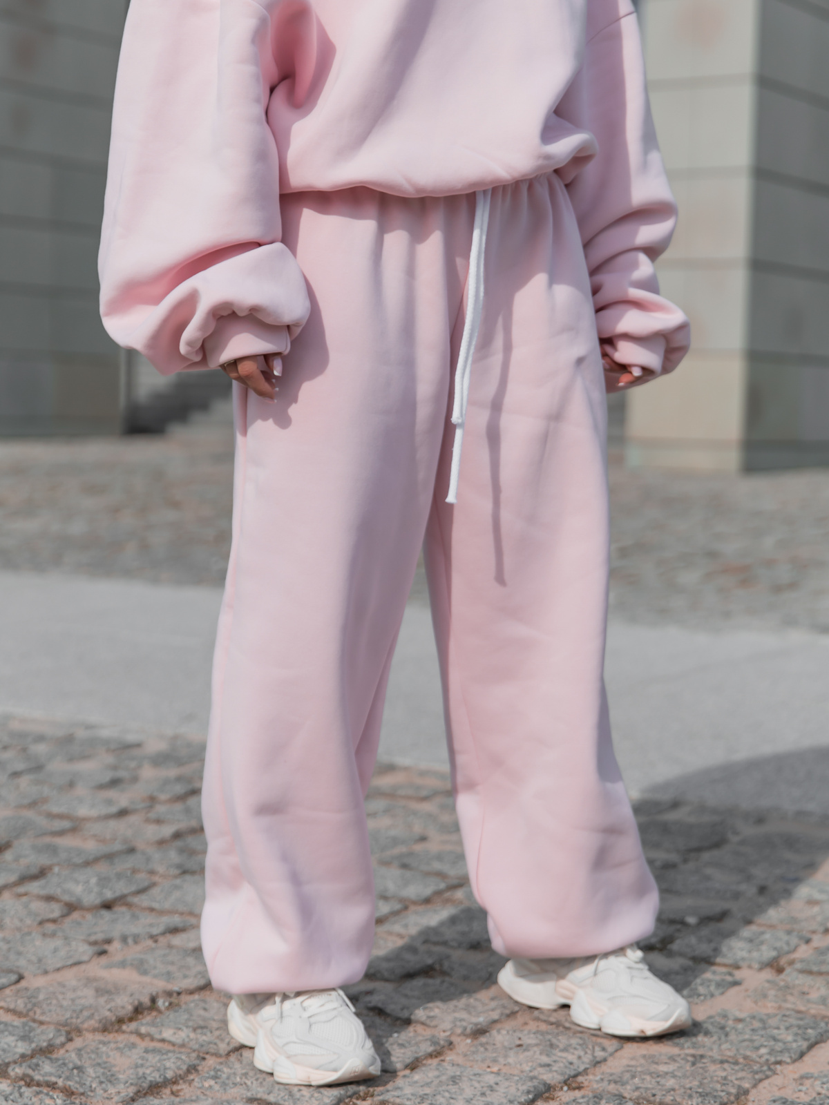 Dresowe bawełniane SPODNIE baggy niski stan baby pink X403