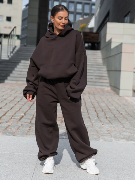 Kompletny zestaw uszyty z wysokiej jakości bawełnianej dzianiny dresowej drapanej od wewnątrz, która jest wyjątkowo przyjemna w noszeniu i otula ciepłem. W skład kompletu wchodzi nasza viralowa, oversize’owa bluza kangurka z kapturem oraz luźne spodnie baggy z gumką w pasie i na nogawkach.