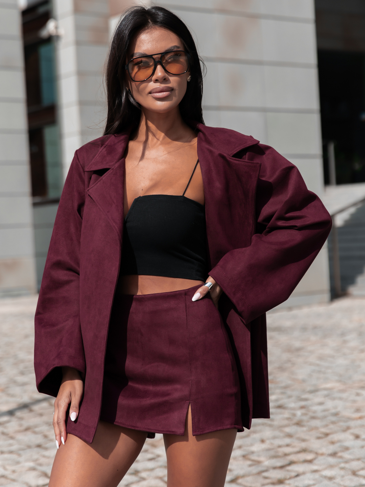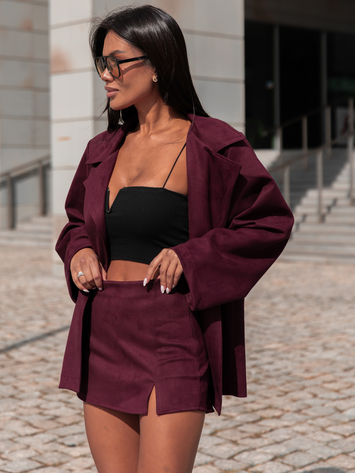 Zamszowe SPÓDNICO SPODENKI z rozporkiem bordowe X408