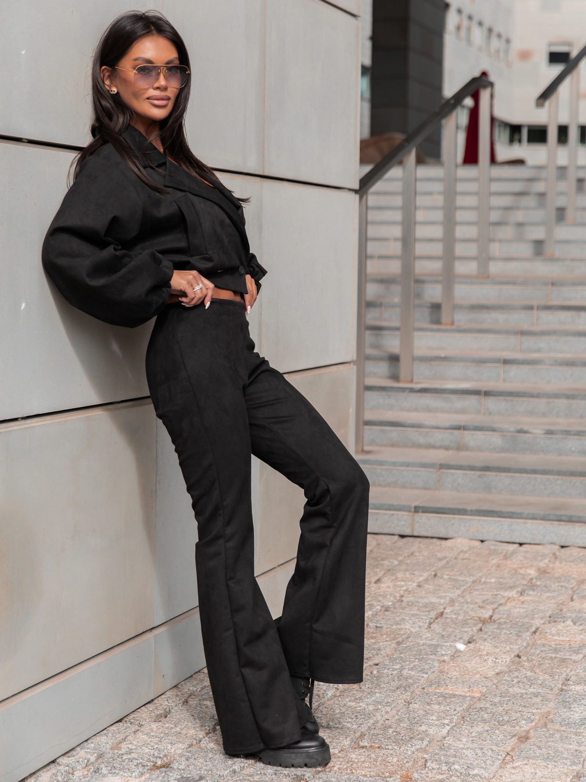 Oversizowa zamszowa krótka KURTKA o szerokim kroju ze ściągaczem czarna X407