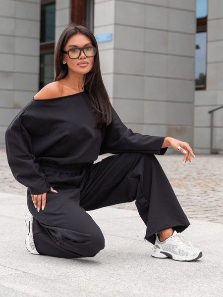 Dresowy bawełniany KOMBINEZON z długimi spodniami czarny X414 k01