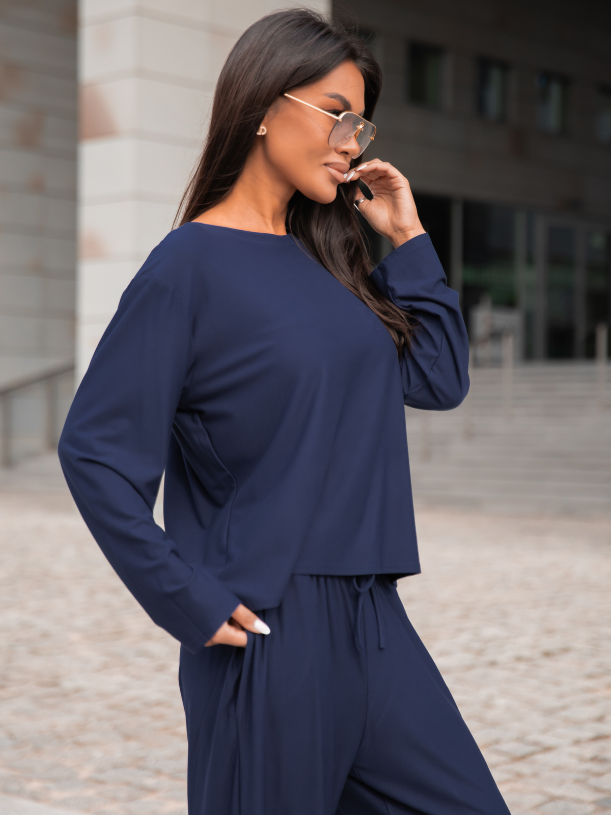 Wiscozowy luźny szeroki T-SHIRT z długim rękawem navy blue X415