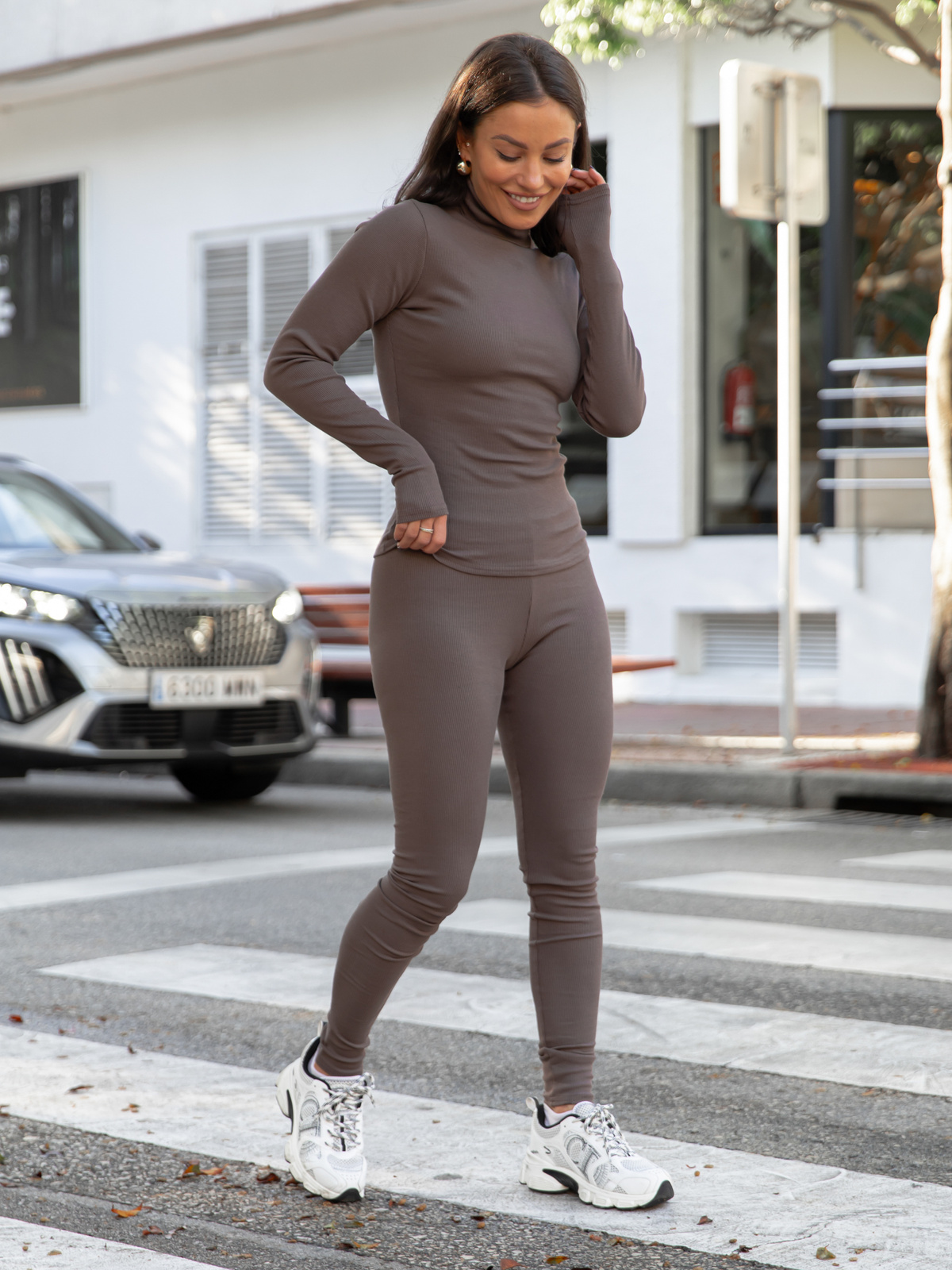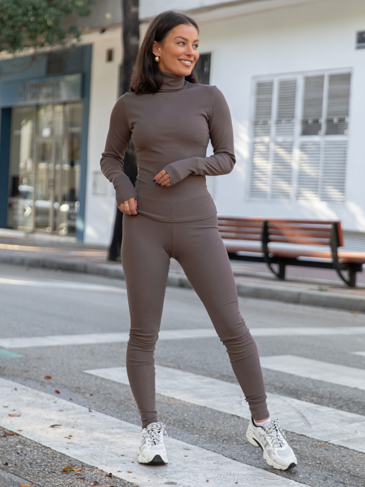 ZESTAW: BLUZKA z golfem z dzianiny prążkowanej X463 + Dopasowane SPODNIE LEGGINSY z dzianiny prążkowanej X464