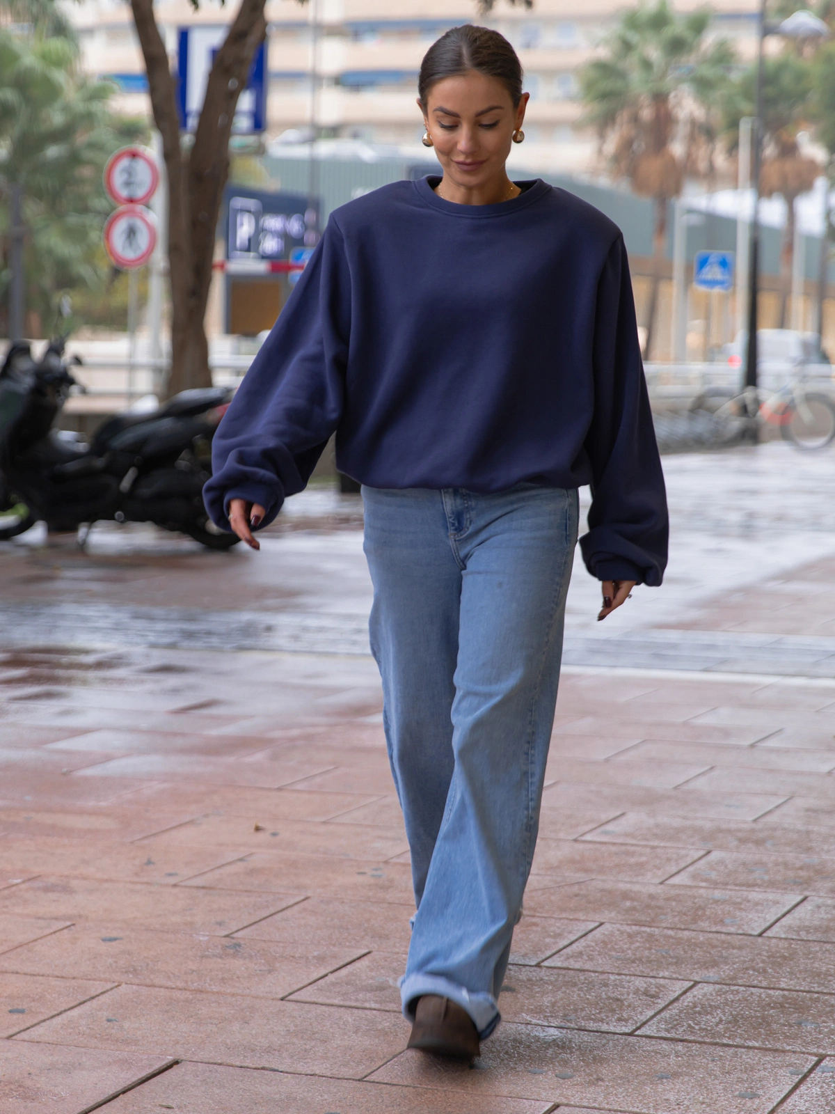 Oversizowa bawełniana BLUZA z drapanego dresu z poduszkami na ramionach navy blue X469 k01