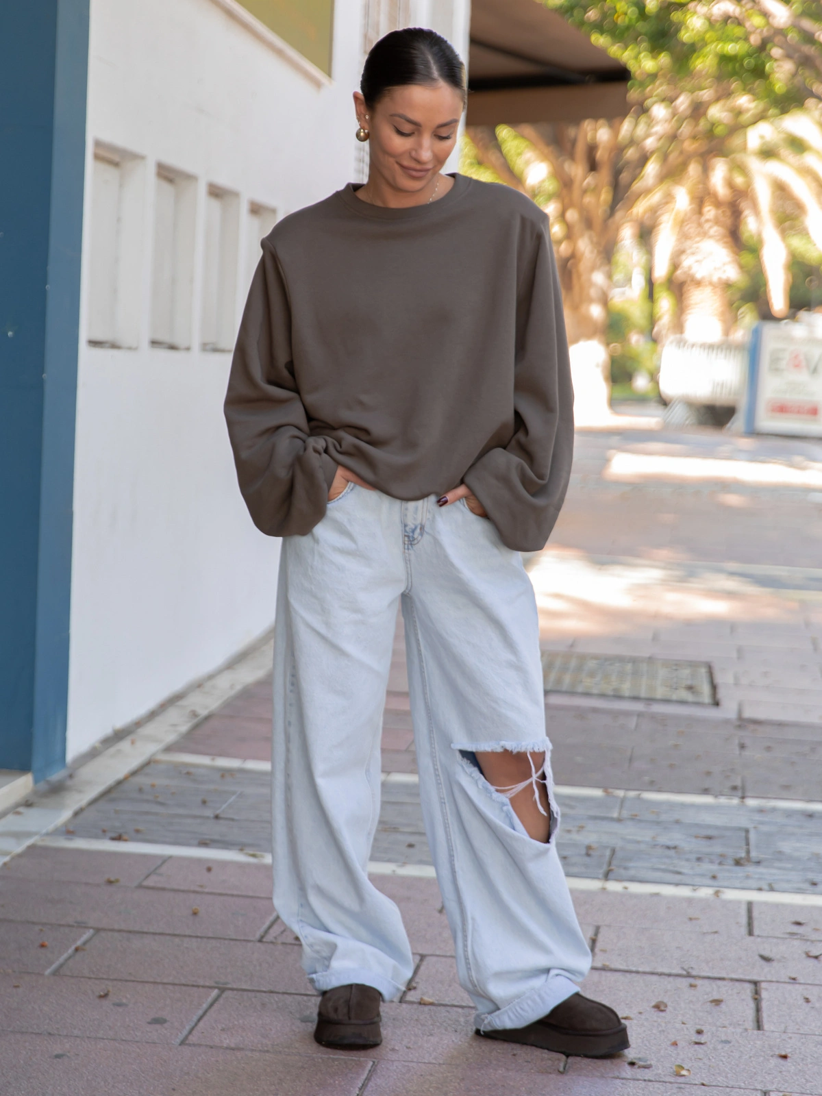 Oversizowa szeroka bluza bez kaptura z poduszkami na ramionach