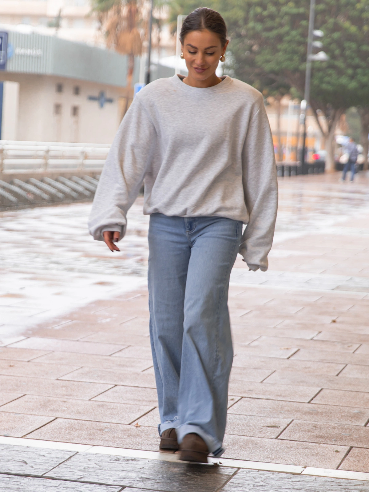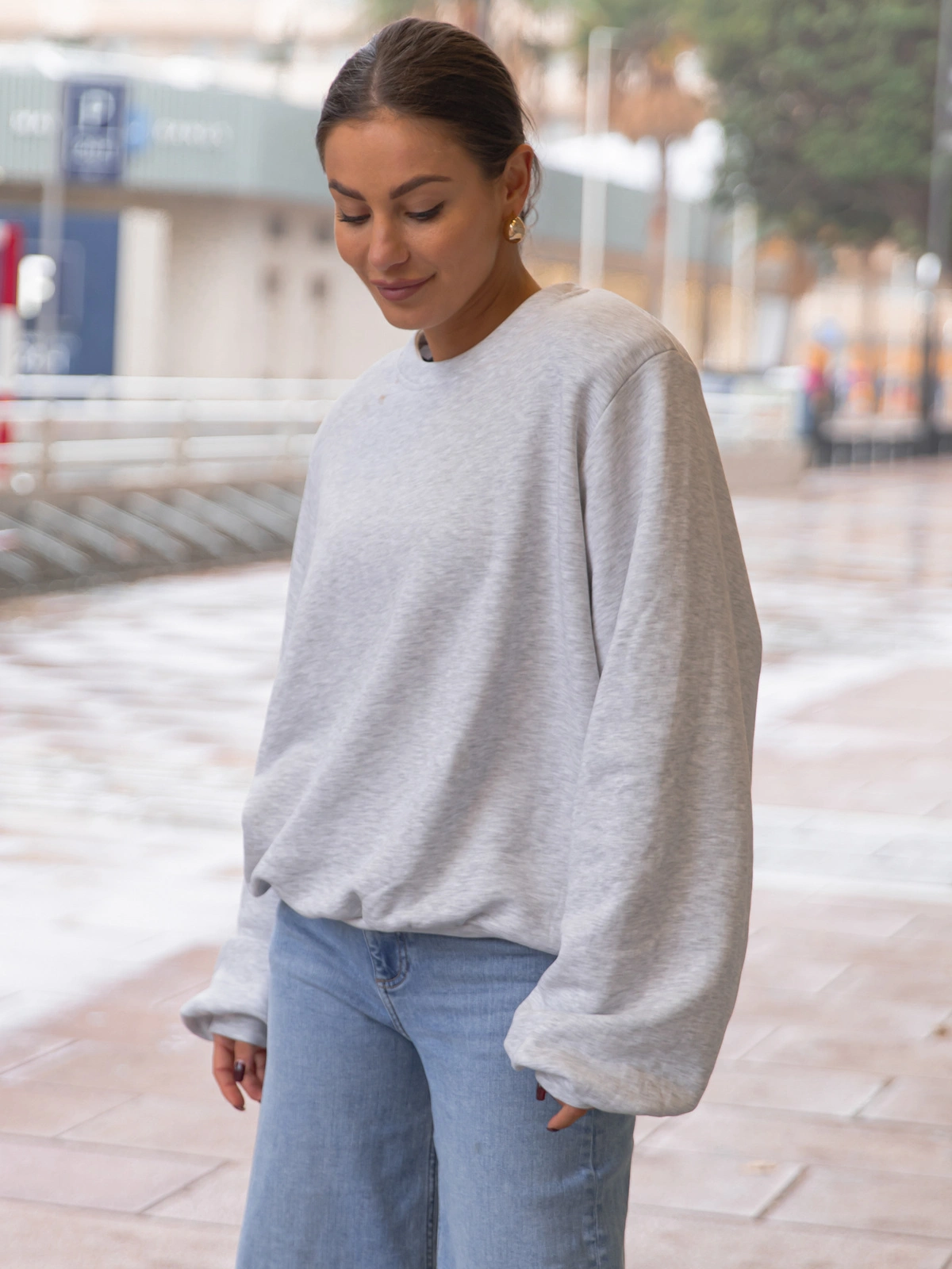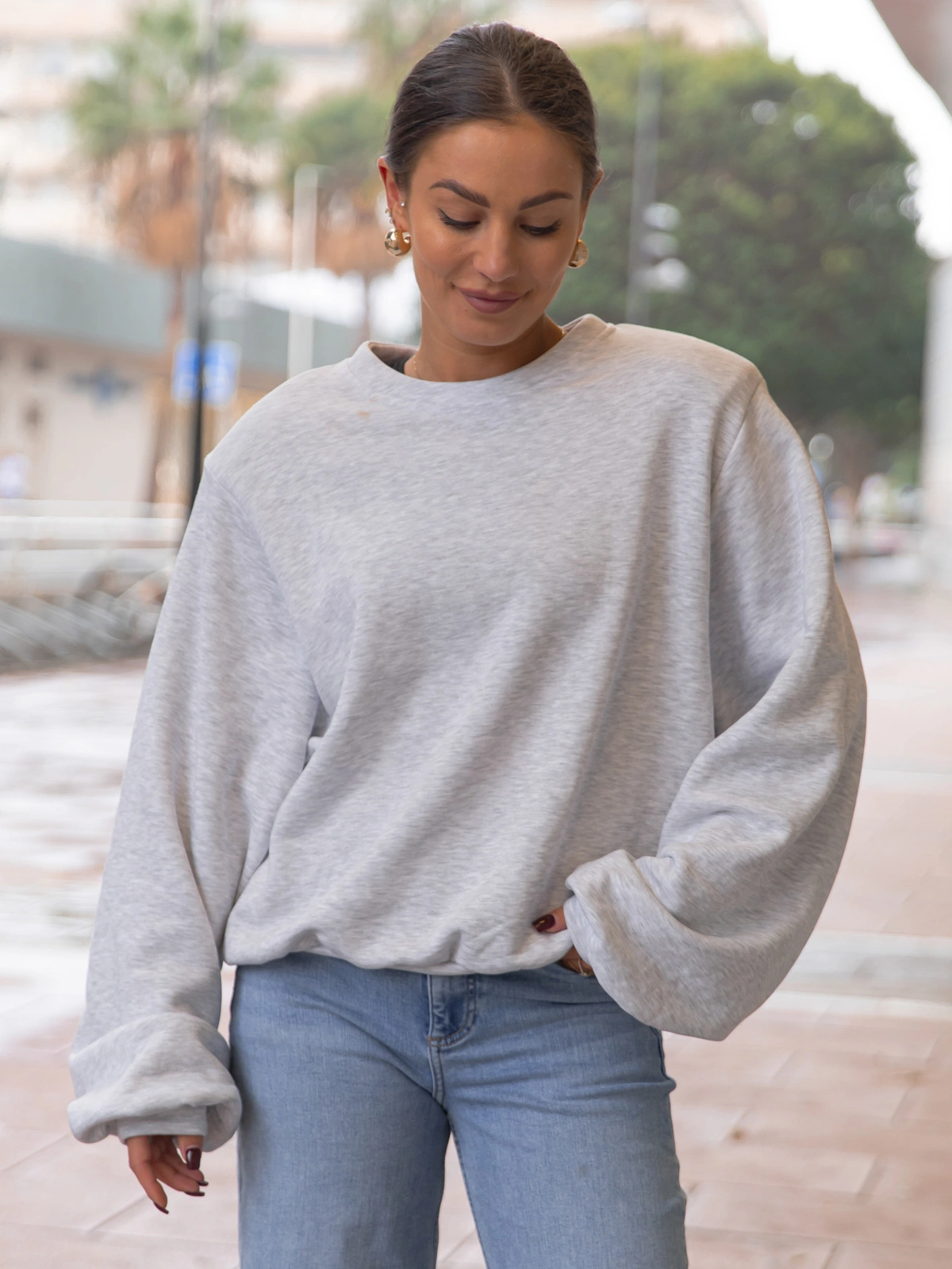 Oversizowa bawełniana BLUZA z drapanego dresu z poduszkami na ramionach szary melanż X469 k01