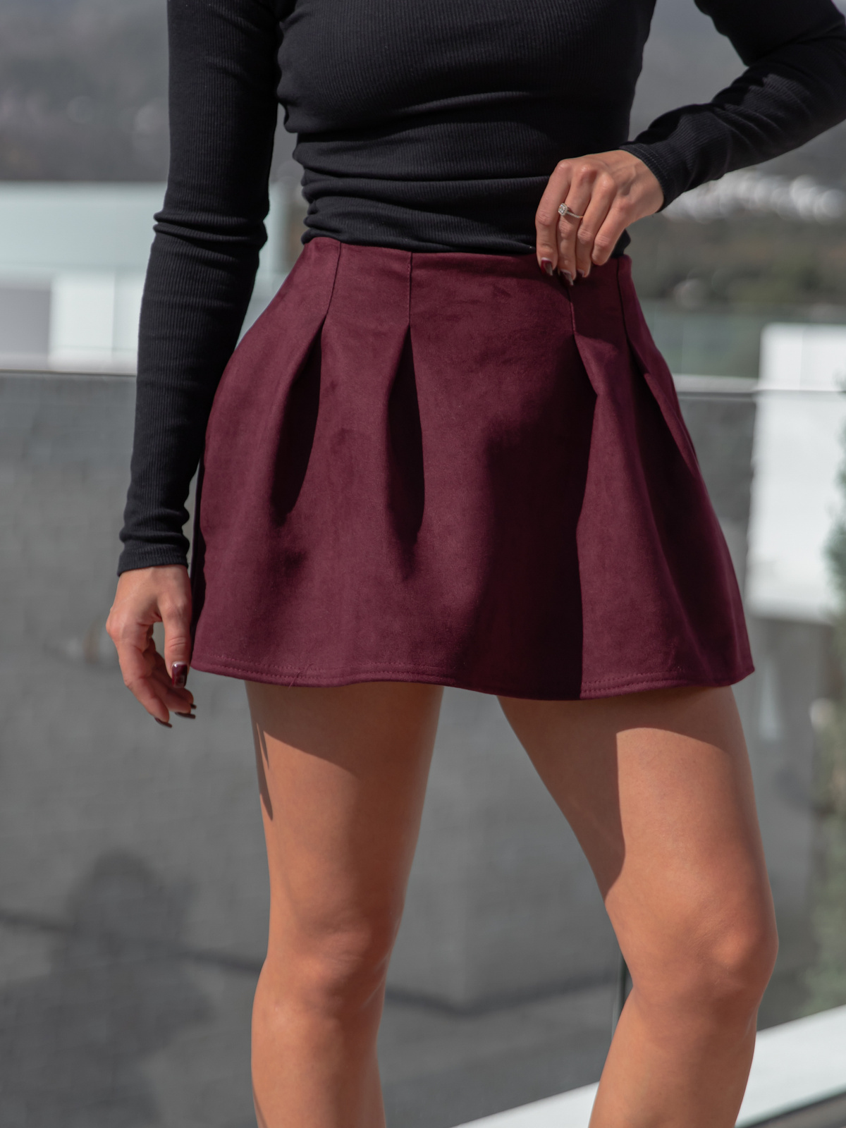 Zamszowa SPÓDNICA z wszytymi spodenkami bordowa X471