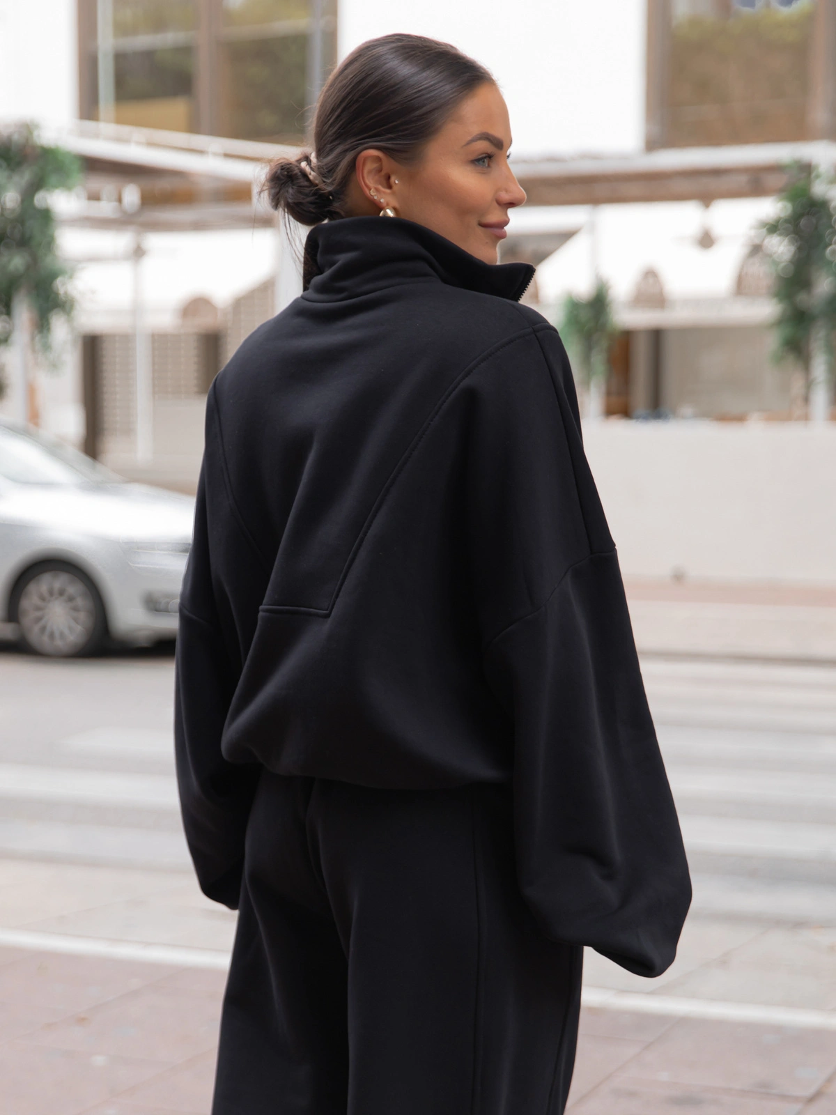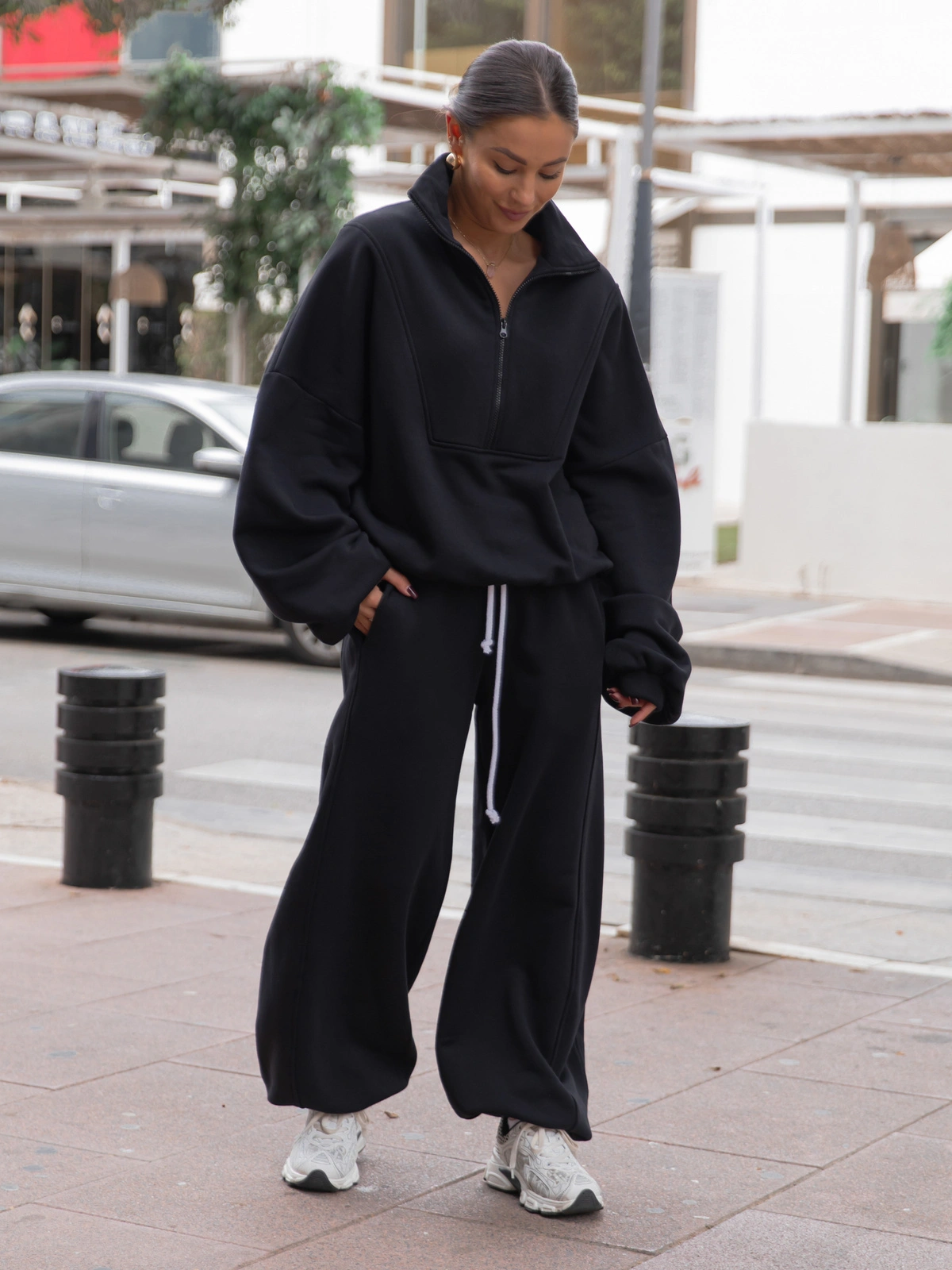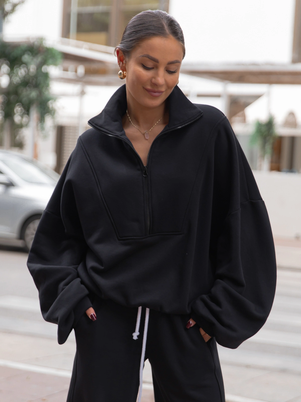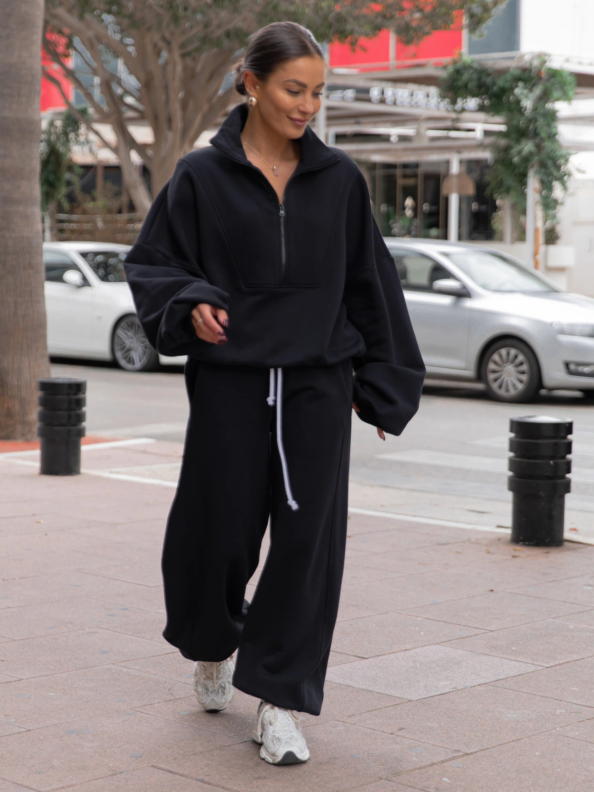 ZESTAW DRESOWY: Oversizowa BLUZA z dresu drapanego na stójce z zamkiem X477 + Oversizowe SPODNIE dresu drapanego z przeszyciem i ściągaczami X476