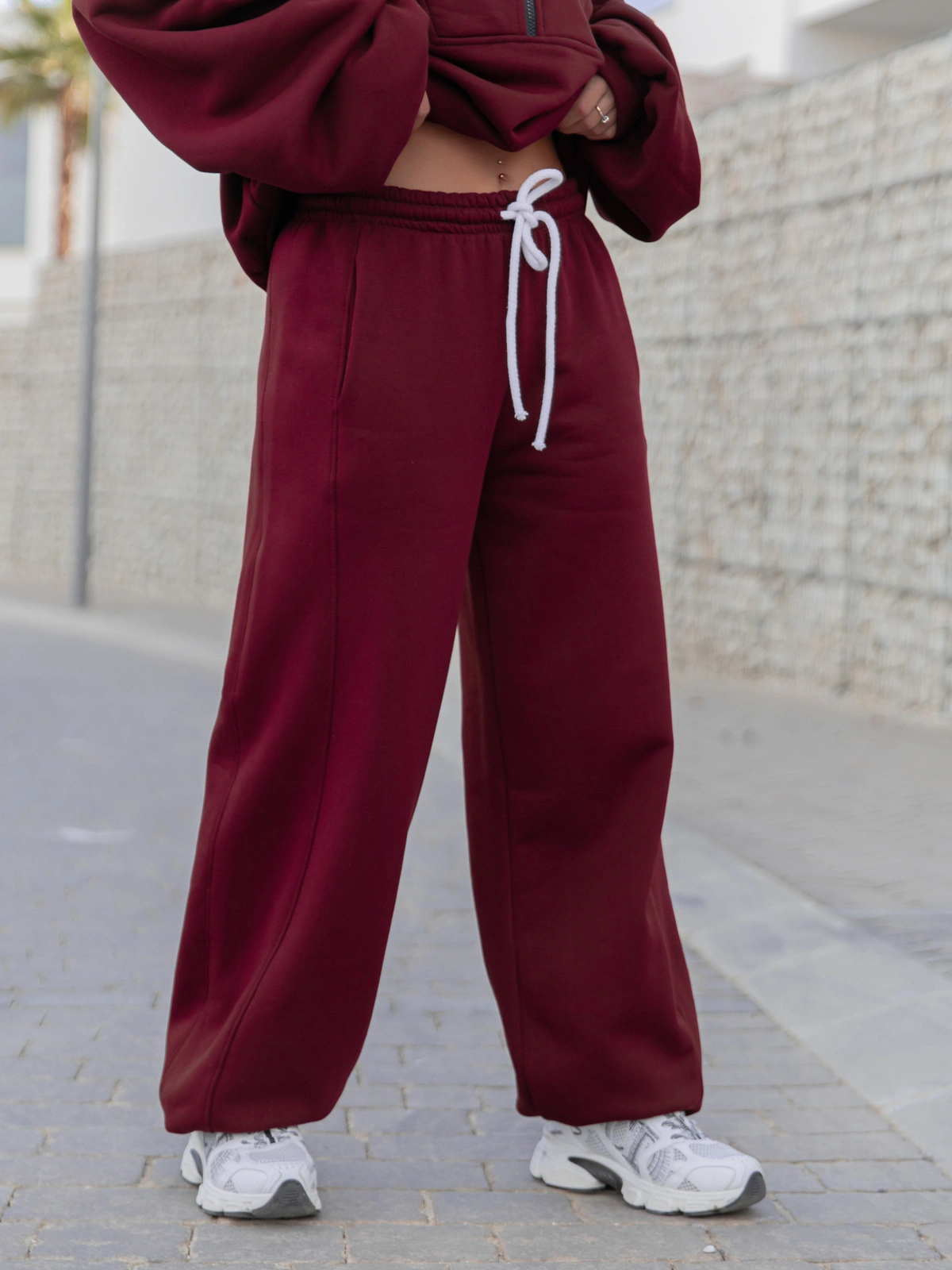 Luźne spodnie z gumką w pasie. Uszyte z bawełnianej dzianiny dresowej drapanej od wewnątrz, dzięki czemu jest przyjemny w noszeniu. Materiał premium od polskiego producenta. Materiał ten nie tylko otula ciepłem, ale również pozwala skórze oddychać, co czyni je świetnym wyborem na każdą porę roku. Stonowane kolory i minimalistyczny design sprawiają, że można je łatwo łączyć z ulubionymi T-shirtami, bluzami czy nawet eleganckimi dodatkami dla efektu "sportowej elegancji".
