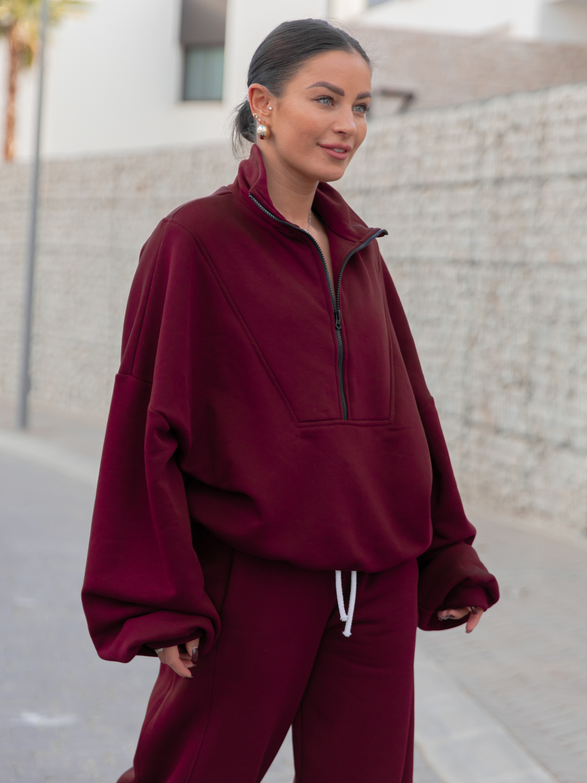 ZESTAW DRESOWY: Oversizowa BLUZA z dresu drapanego na stójce z zamkiem X477 + Oversizowe SPODNIE dresu drapanego z przeszyciem i ściągaczami X476