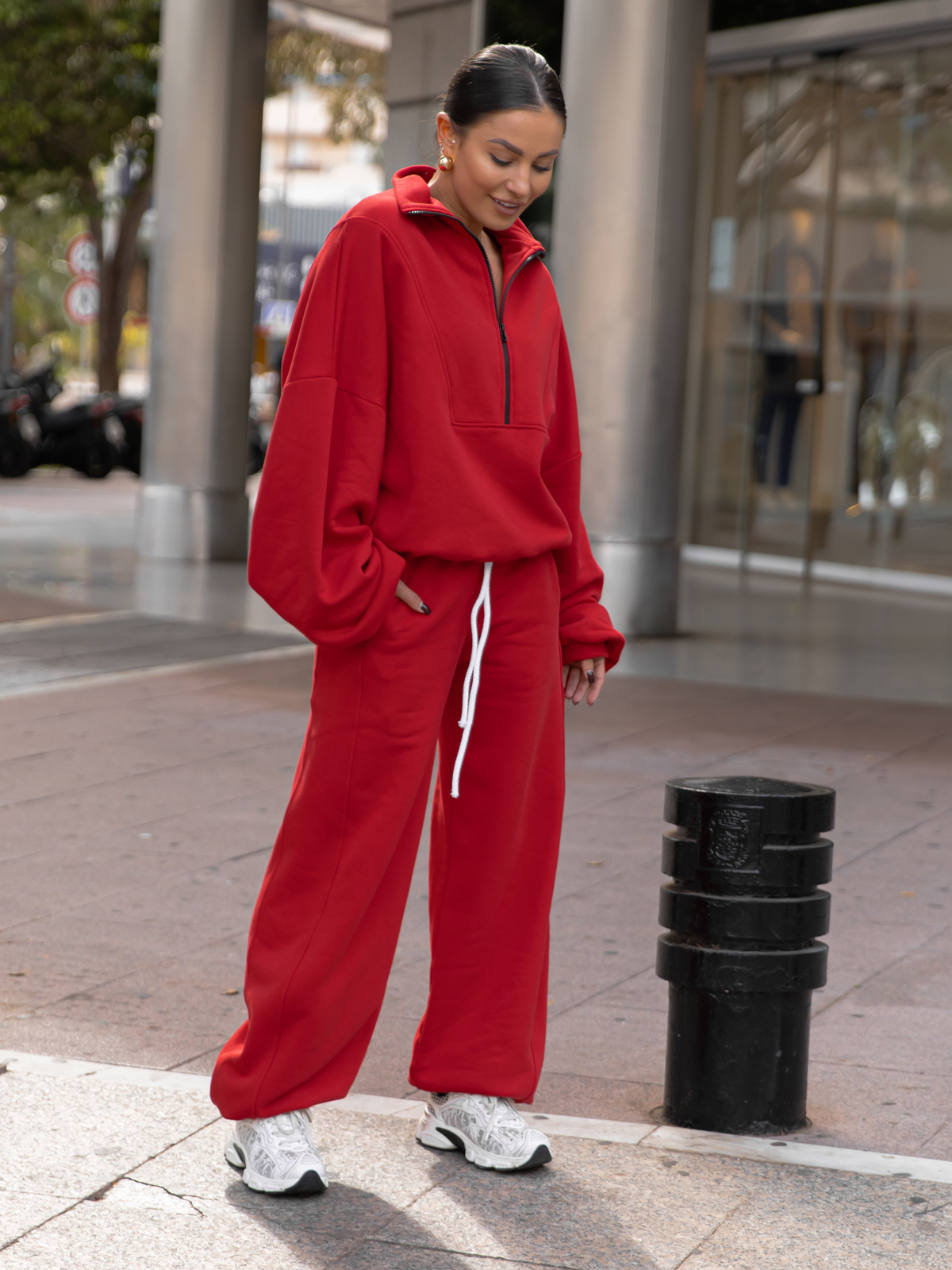 ZESTAW DRESOWY: Oversizowa BLUZA z dresu drapanego na stójce z zamkiem X477 + Oversizowe SPODNIE dresu drapanego z przeszyciem i ściągaczami X476