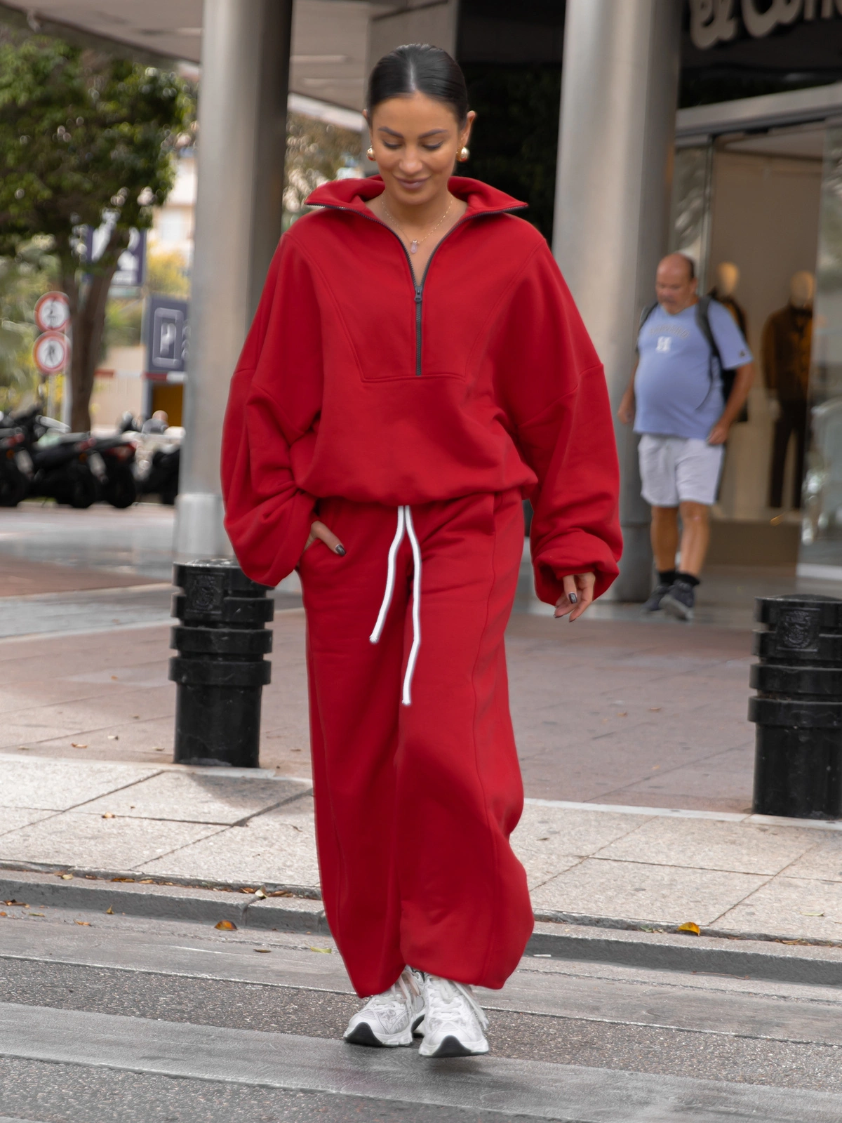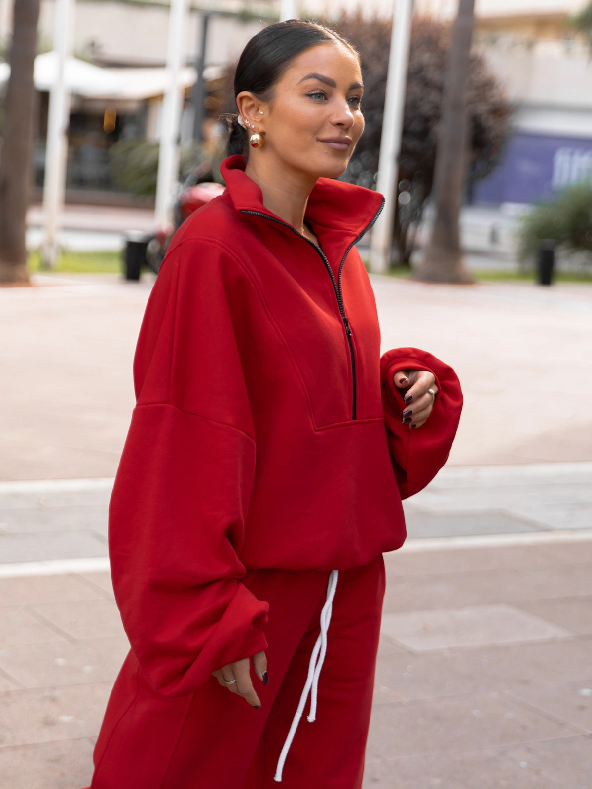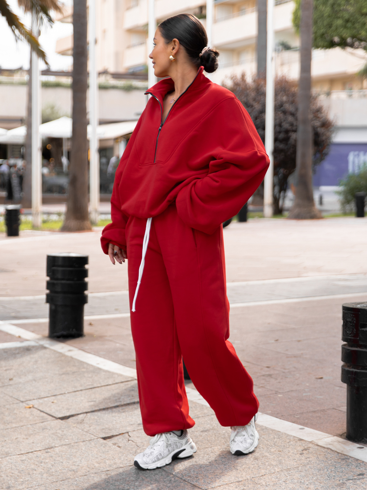 Oversizowa bawełniana BLUZA z dresu drapanego na stójce z zamkiem czerwona X477