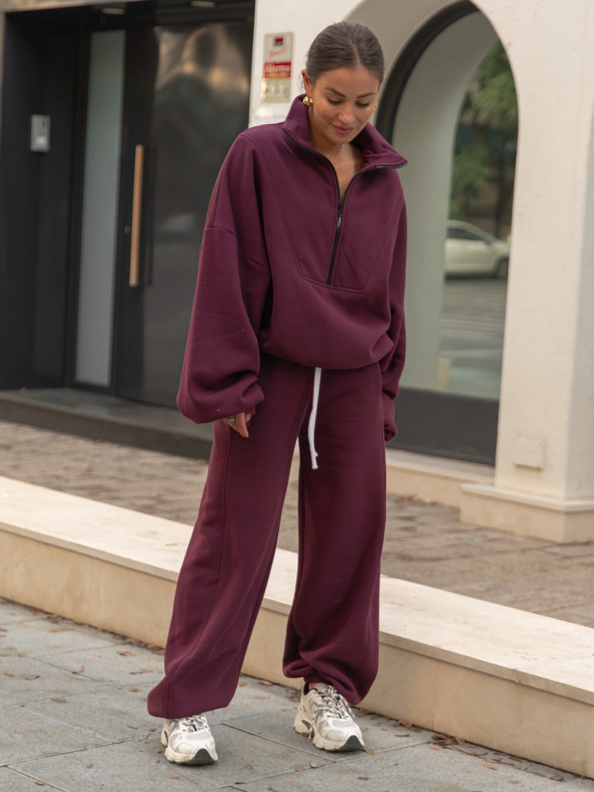 ZESTAW DRESOWY: Oversizowa BLUZA z dresu drapanego na stójce z zamkiem X477 + Oversizowe SPODNIE dresu drapanego z przeszyciem i ściągaczami X476
