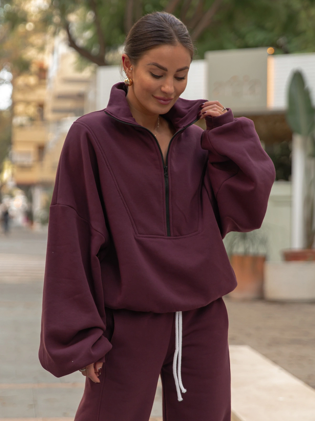 Oversizowa szeroka bluza ze stójką na zamek