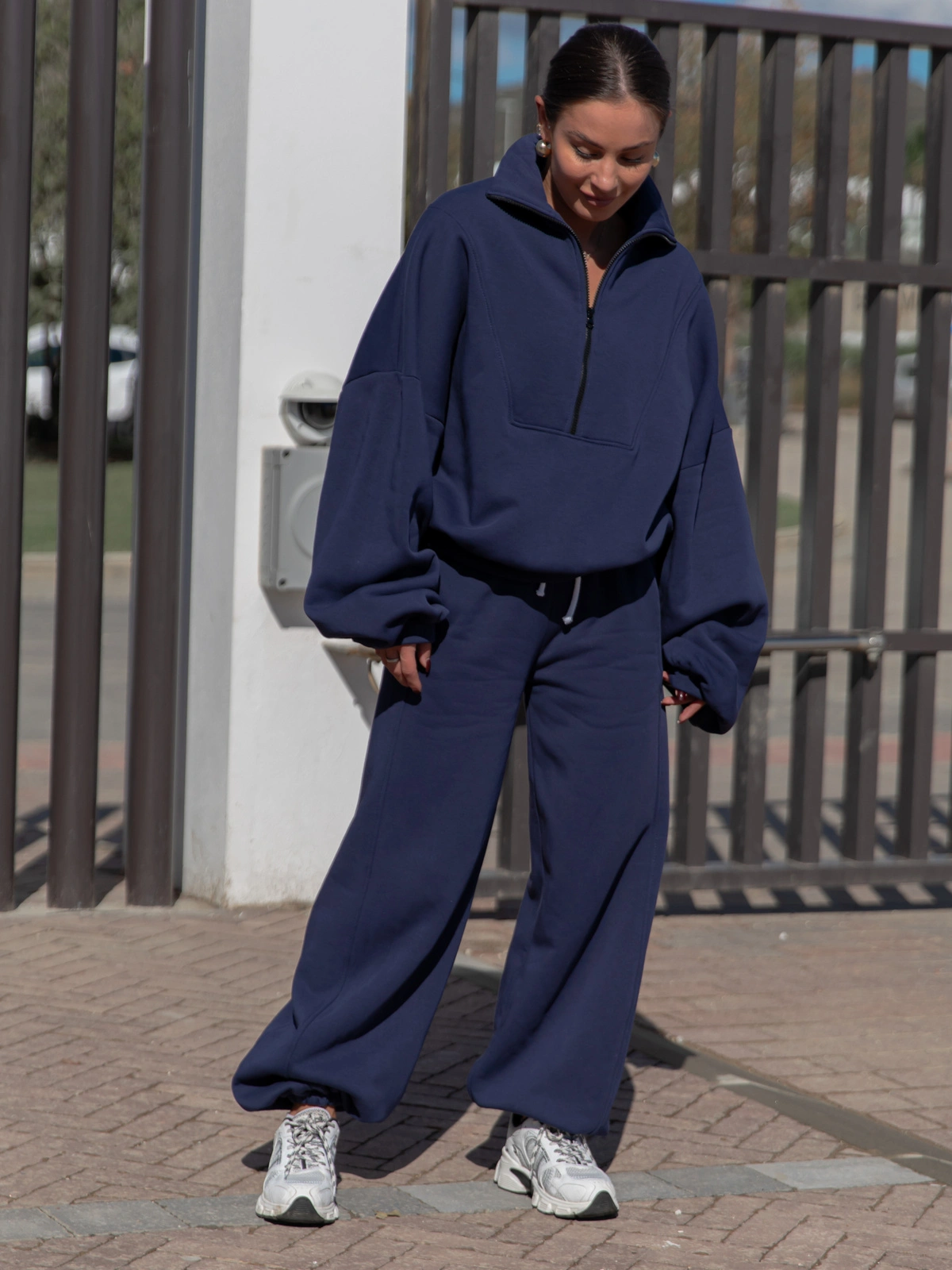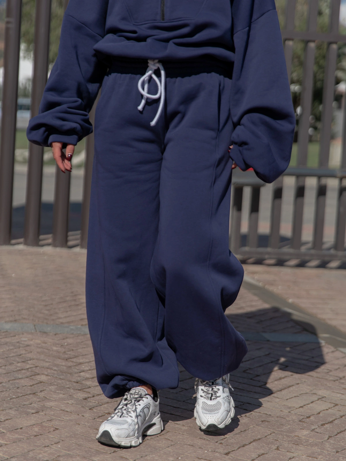 ZESTAW DRESOWY: Oversizowa BLUZA z dresu drapanego na stójce z zamkiem X477 + Oversizowe SPODNIE dresu drapanego z przeszyciem i ściągaczami X476