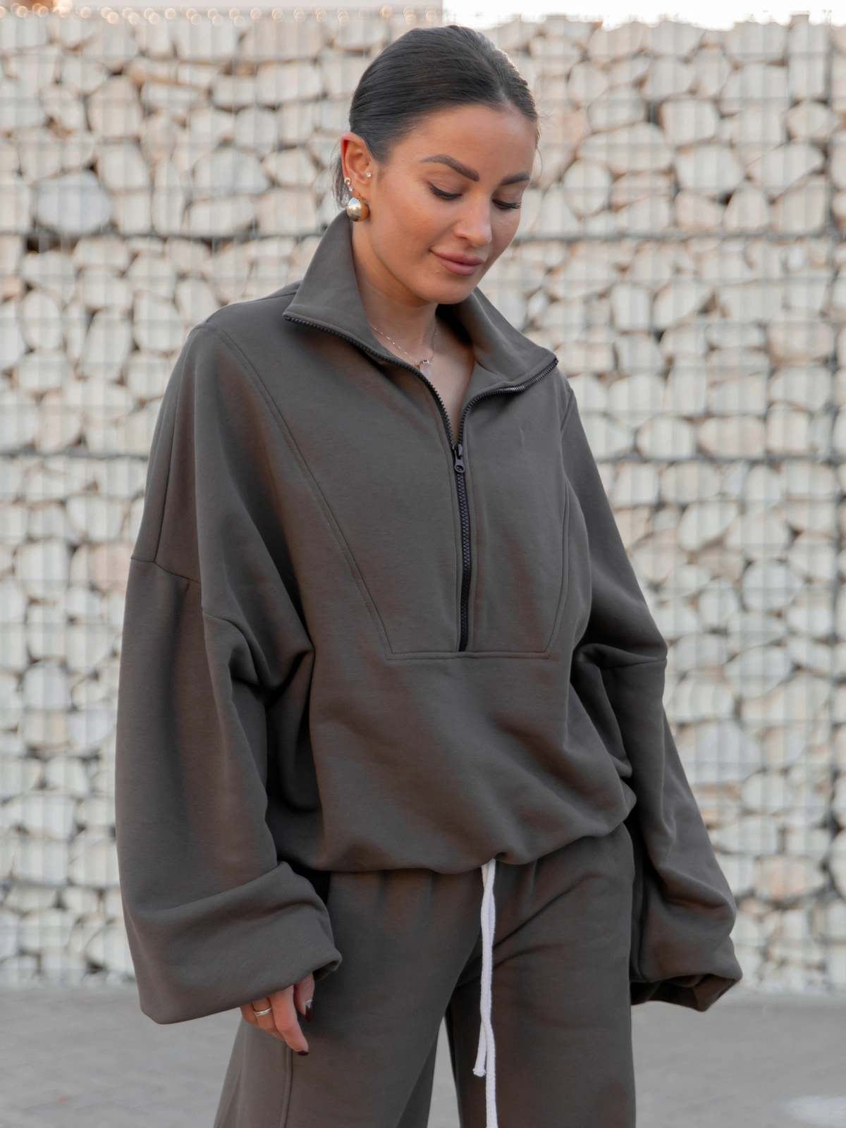 Oversizowa szeroka bluza ze stójką na zamek