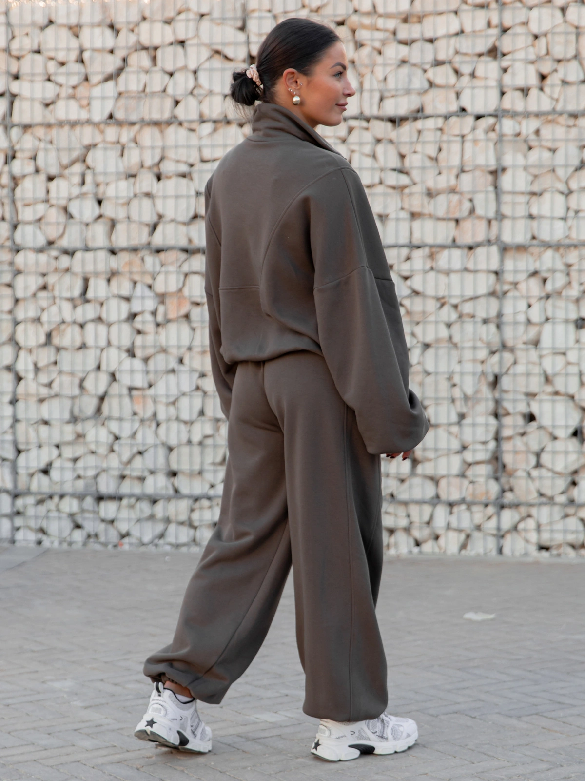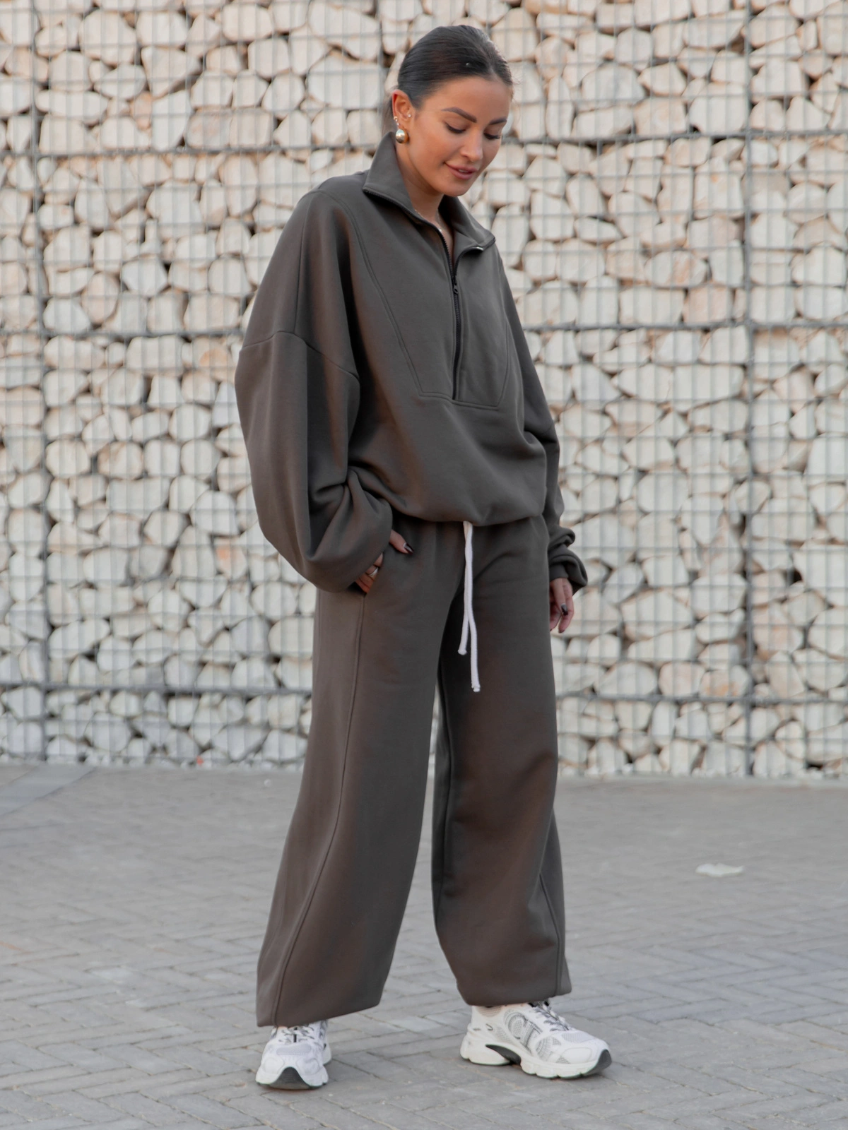 ZESTAW DRESOWY: Oversizowa BLUZA z dresu drapanego na stójce z zamkiem X477 + Oversizowe SPODNIE dresu drapanego z przeszyciem i ściągaczami X476