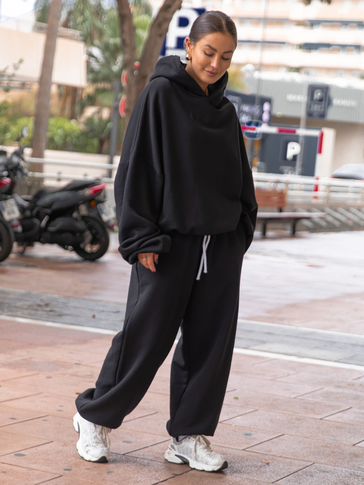 Dresowe bawełniane SPODNIE baggy niski stan czarne X403