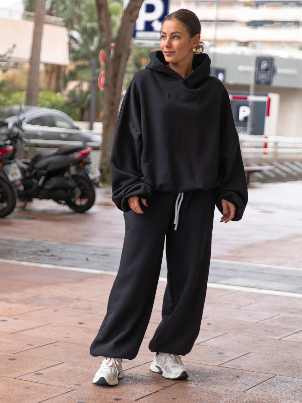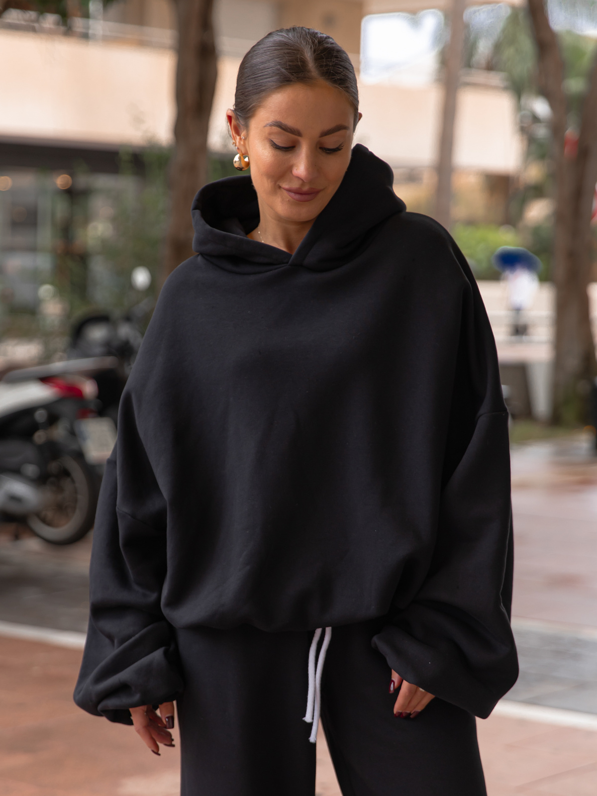Oversizowa bawełniana BLUZA z dresu drapanego z kapturem czarna X478