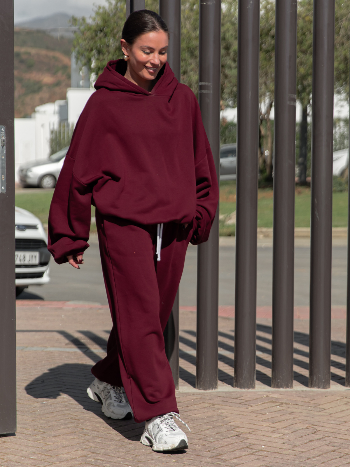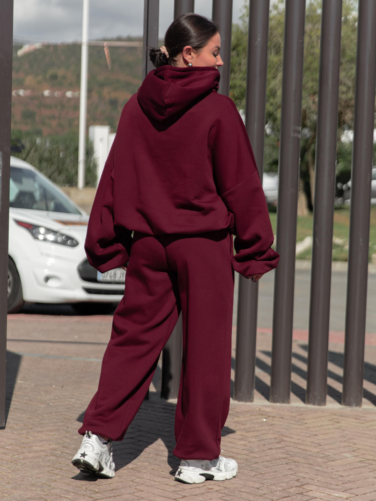 Dresowe bawełniane SPODNIE baggy niski stan bordowe X403
