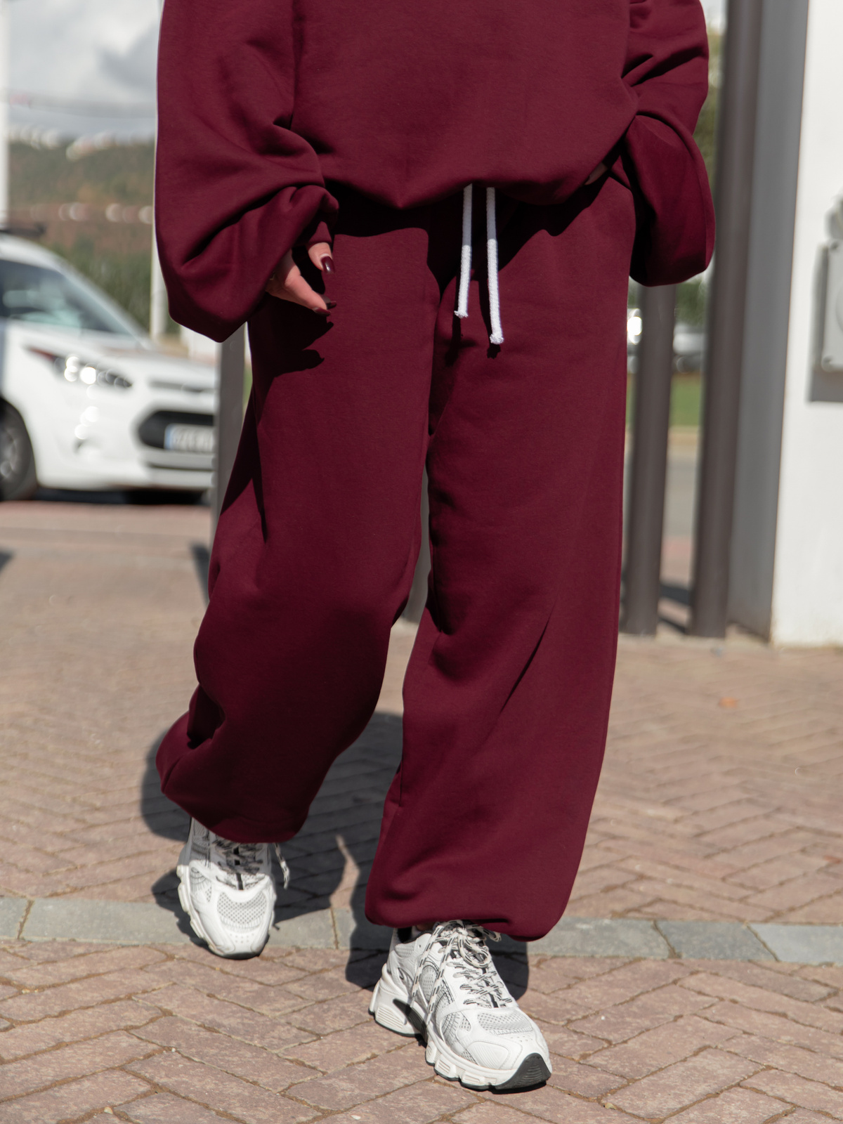 Uszyte z wysokiej jakości bawełnianej dzianiny dresowej drapanej od wewnątrz, materiał ten jest wyjątkowo miękki i przyjemny dla skóry. Tkanina premium od polskiego producenta otula ciepłem, a jednocześnie pozwala skórze oddychać, dzięki czemu spodnie sprawdzą się doskonale w każdej porze roku – od chłodniejszych dni po cieplejsze popołudnia.