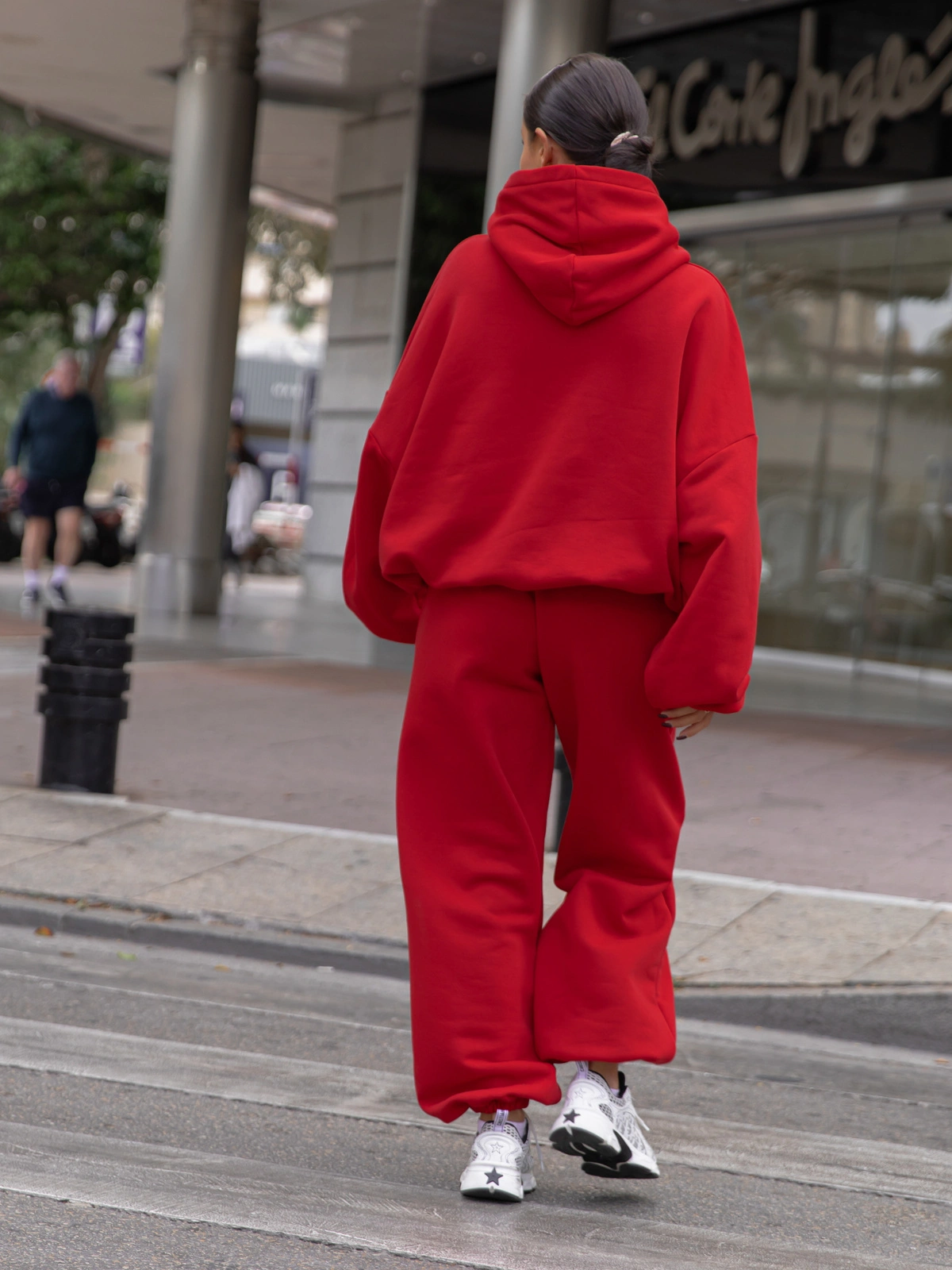 Uszyte z wysokiej jakości bawełnianej dzianiny dresowej drapanej od wewnątrz, materiał ten jest wyjątkowo miękki i przyjemny dla skóry. Tkanina premium od polskiego producenta otula ciepłem, a jednocześnie pozwala skórze oddychać, dzięki czemu spodnie sprawdzą się doskonale w każdej porze roku – od chłodniejszych dni po cieplejsze popołudnia.