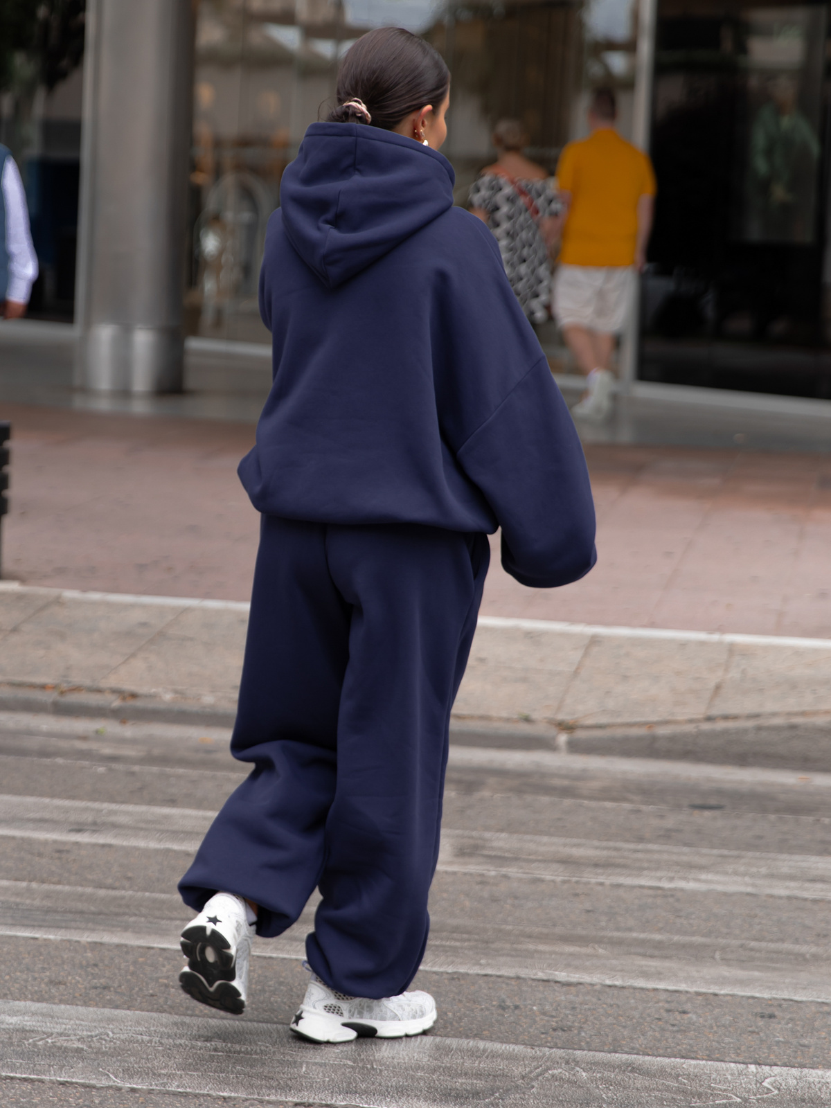 Oversizowa bawełniana BLUZA z dresu drapanego z kapturem navy blue X478