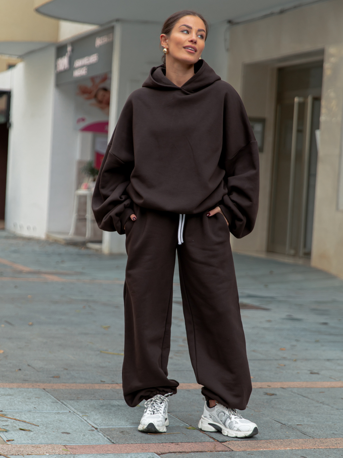ZESTAW DRESOWY: Bawełniana BLUZA z dresu drapanego z kapturem X478 + Dresowe SPODNIE baggy niski stan X403