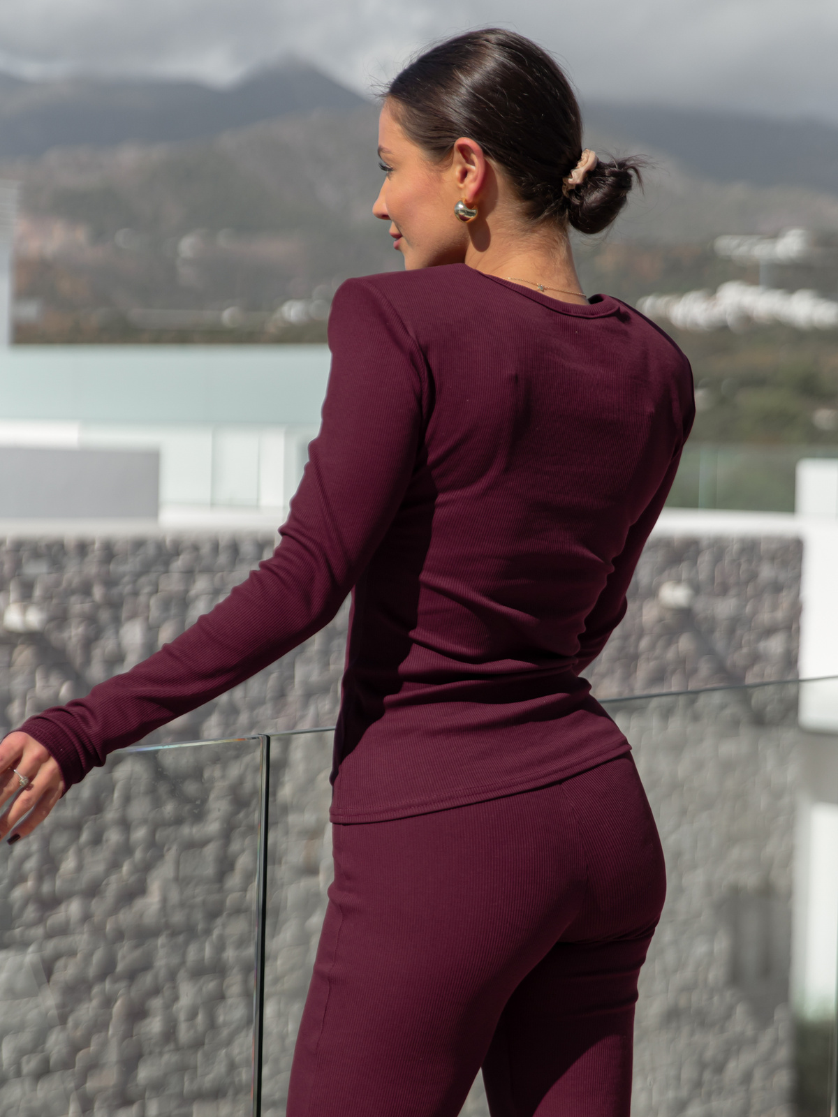 Oba elementy wykonane są z wysokiej jakości bawełnianej dzianiny z dodatkiem elastanu o subtelnej fakturze prążka, pochodzącej od polskiego producenta. Materiał jest przyjemny w dotyku, elastyczny, oddychający i doskonale dopasowuje się do sylwetki, zapewniając wygodę przez cały dzień.