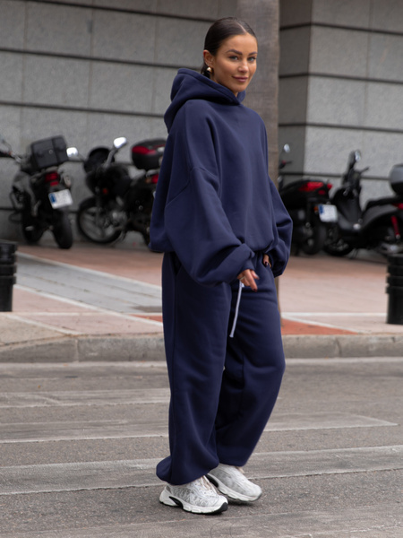 Oversizowa bawełniana BLUZA z dresu drapanego z kapturem navy blue X478 (1 szt.)