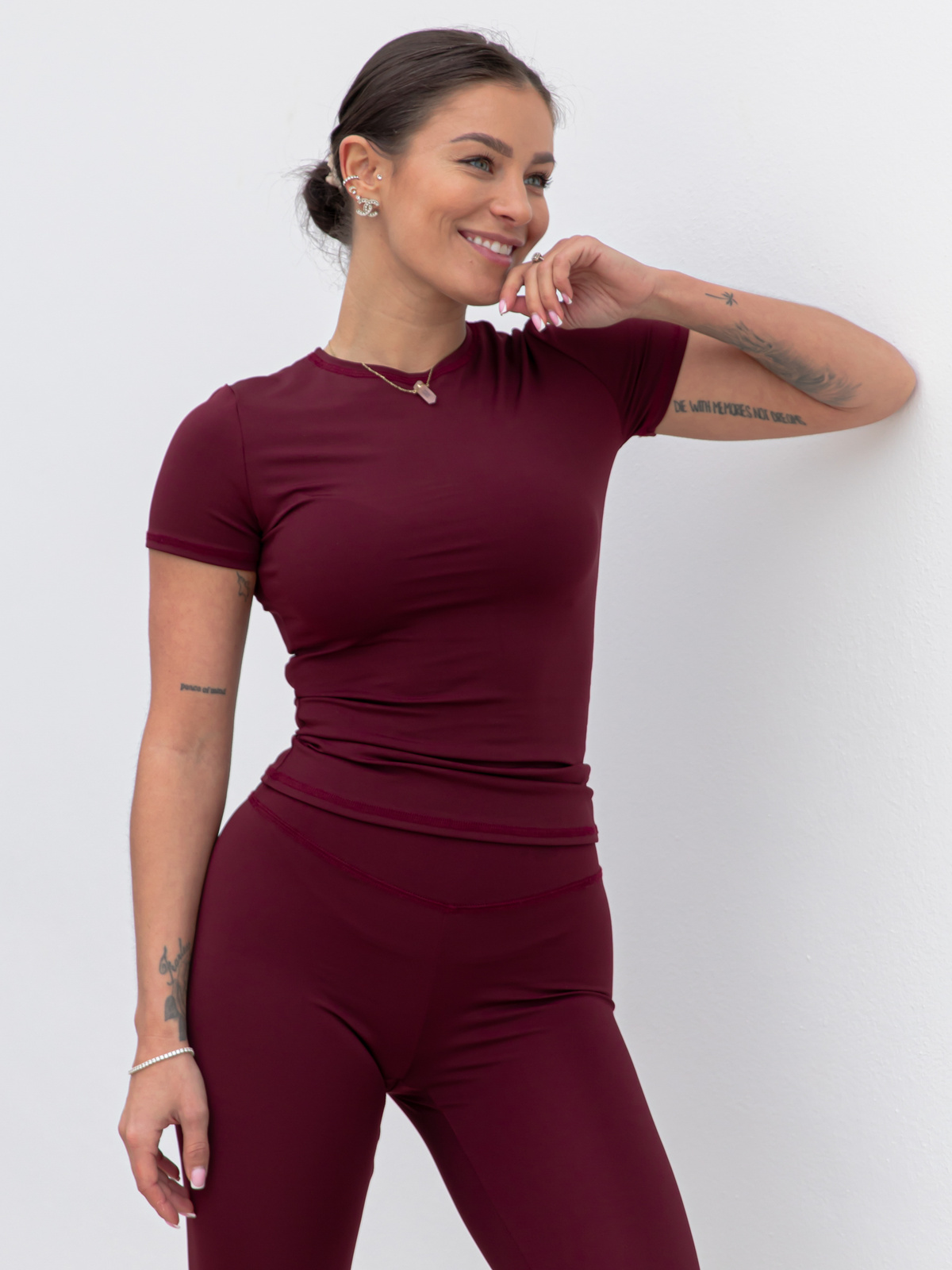 Dopasowany krój podkreśla sylwetkę, a krótki rękaw zapewnia swobodę i komfort w każdej fazie ćwiczeń.