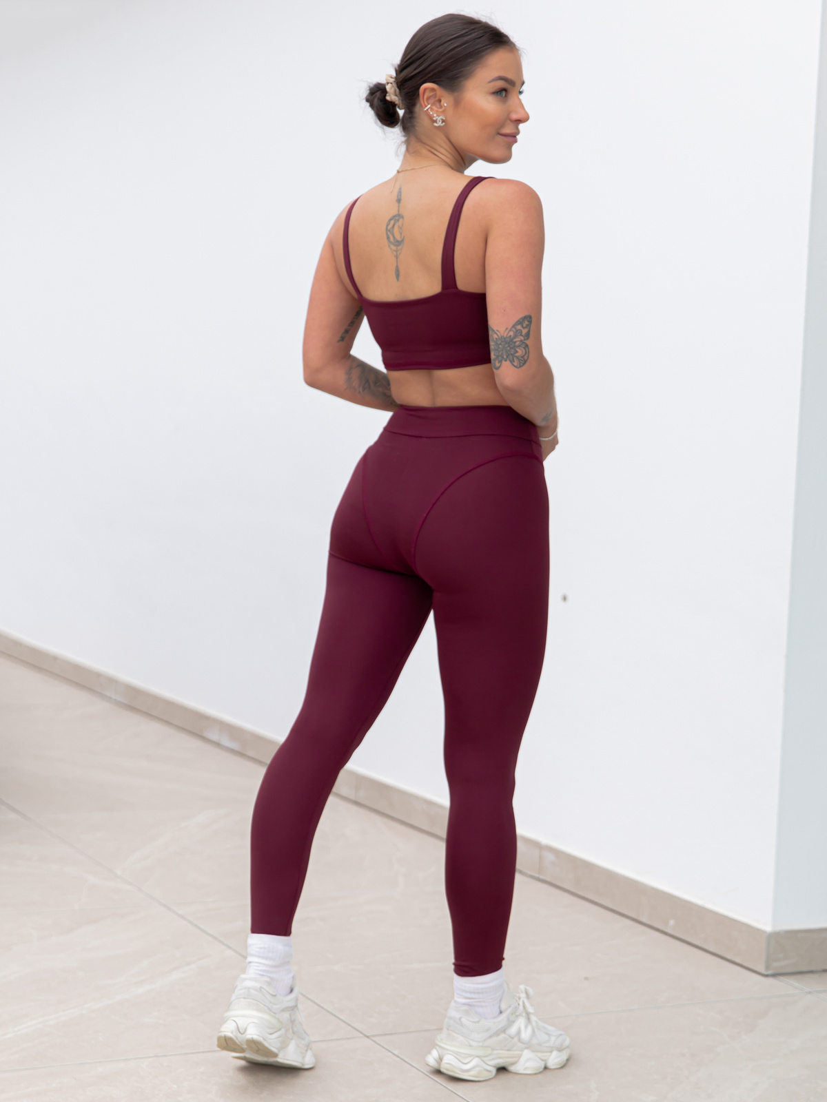 FITNESS / SIŁOWNIA / JOGA dopasowane SPODNIE legginsy z wysokim stanem z przeszyciami bordowe F106