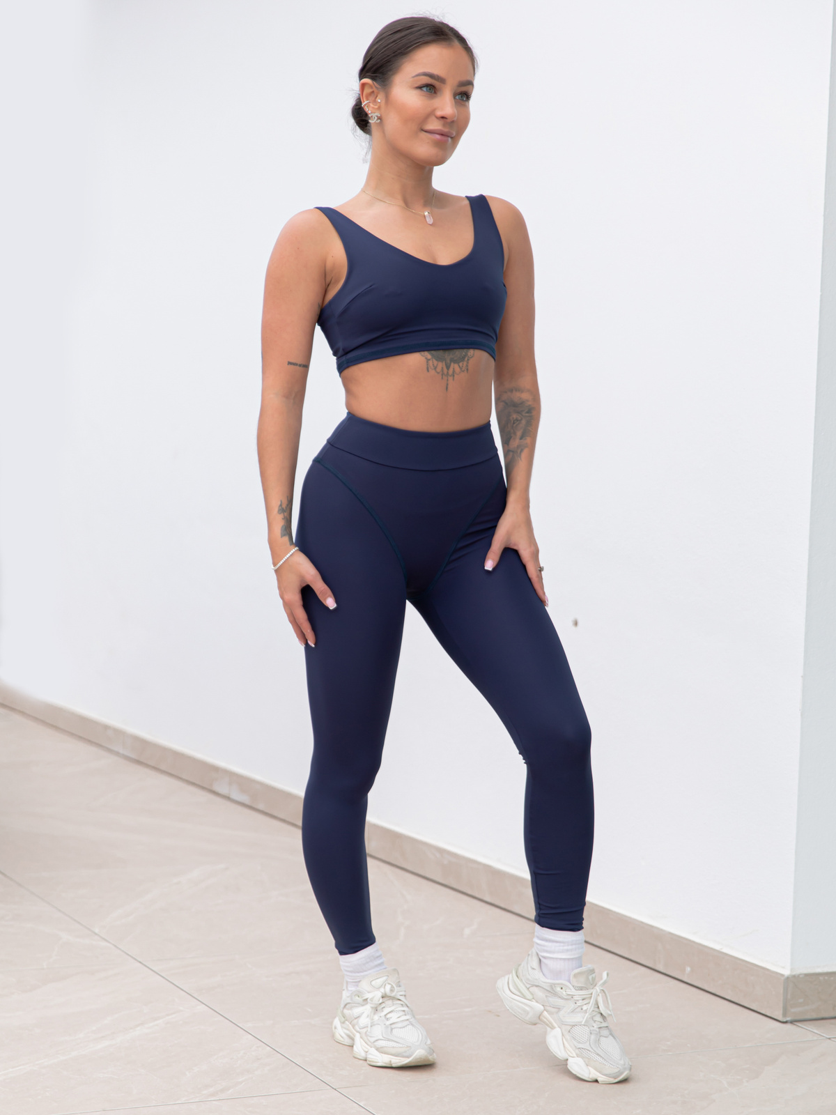FITNESS / SIŁOWNIA / JOGA dopasowane SPODNIE legginsy z wysokim stanem z przeszyciami navy blue F106