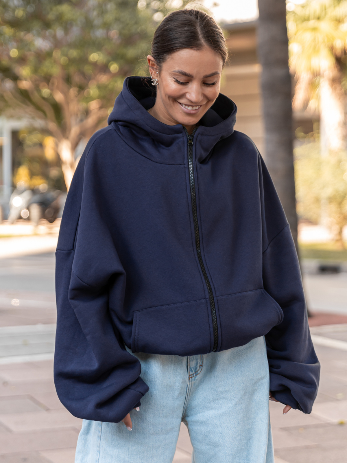 Bluza wykonana z dresówki drapanej od wewnątrz – bawełny z dodatkiem poliestru – co sprawia, że jest miękka, przyjemna w dotyku i trwała. Materiał premium od polskiego producenta.