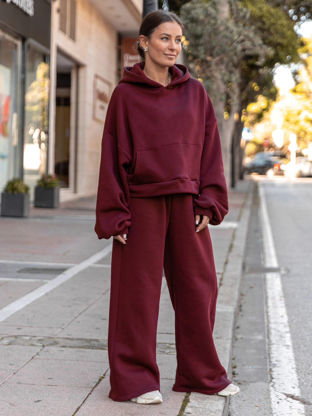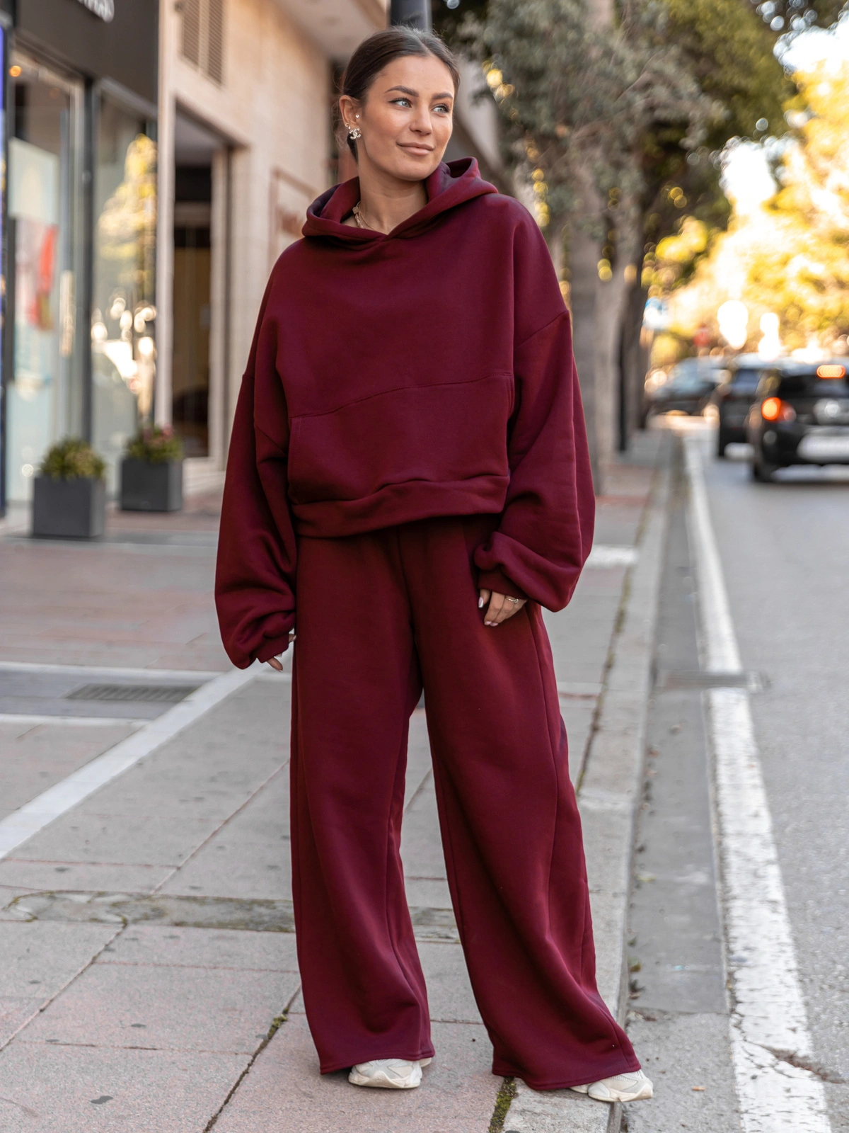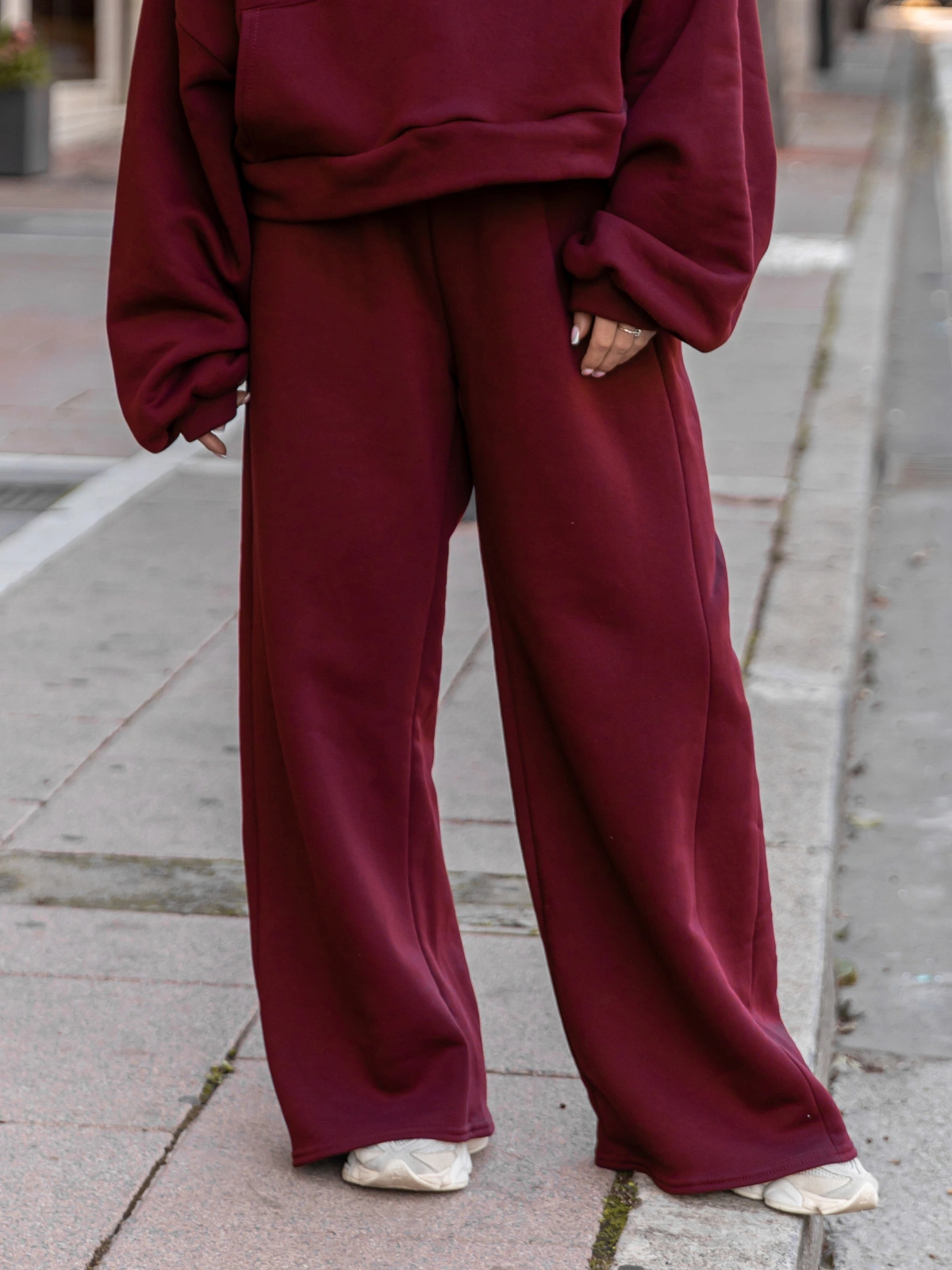 Oversizowe spodnie dresowe, które łączą w sobie wygodę, funkcjonalność oraz modny, minimalistyczny design. Spodnie bez ściagaczy na dole , z wszytym prostym klinem z boku .