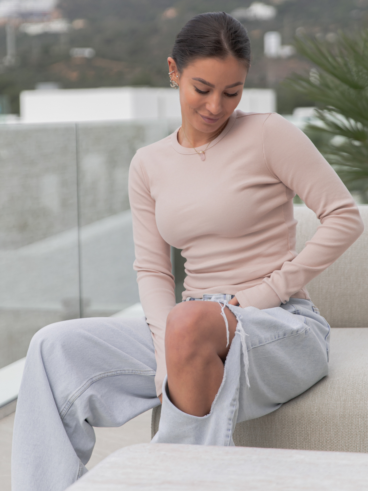 Uszyta z wysokiej jakości bawełnianej dzianiny z dodatkiem elastanu, o fakturze prążka. Materiał premium od polskiego producenta jest przyjemny w dotyku, oddychający i elastyczny, dzięki czemu bluzka idealnie dopasowuje się do sylwetki i pozostaje wygodna przez cały dzień.