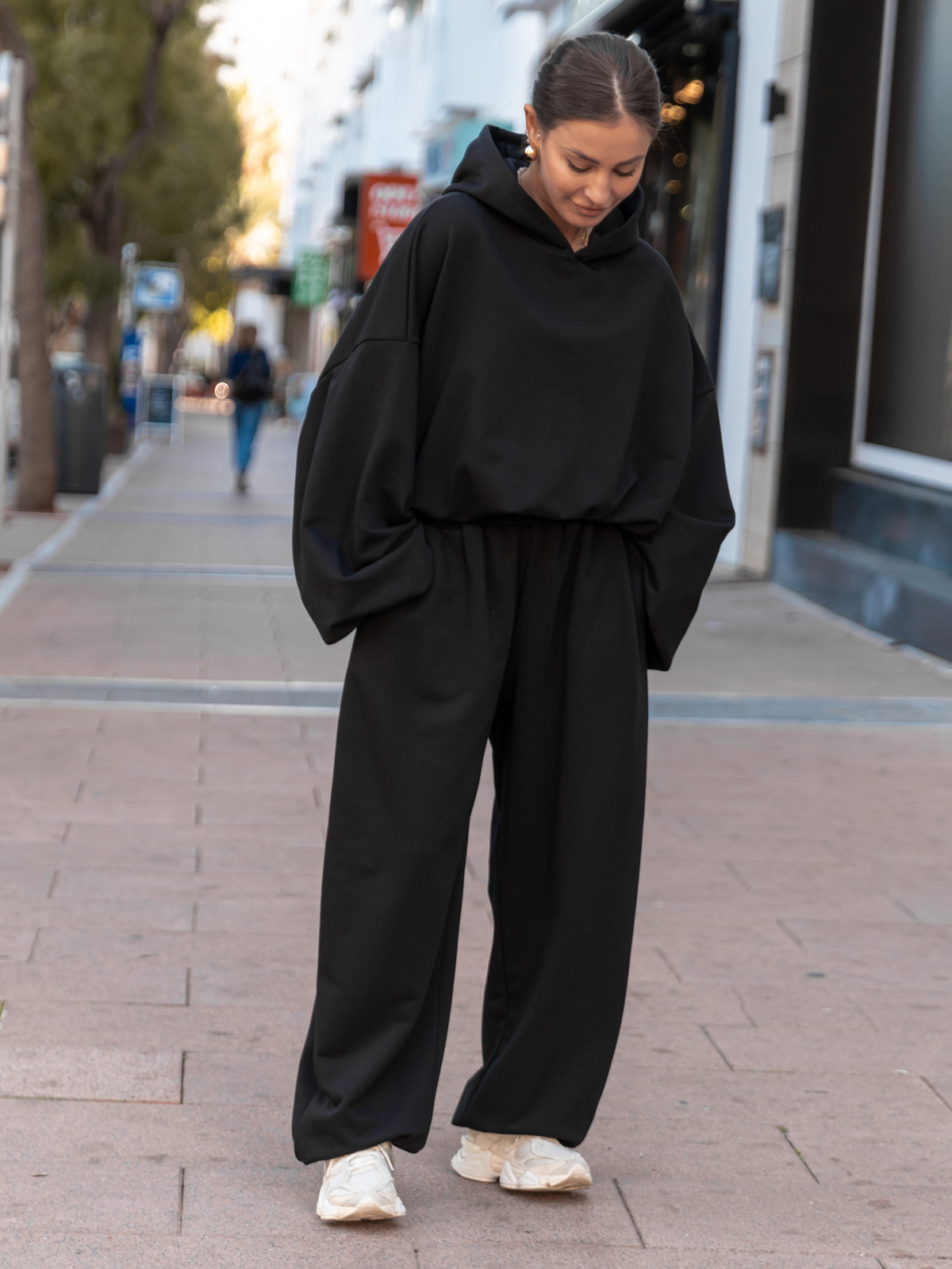 Luźne spodnie mega baggy łączą maksymalną wygodę z nowoczesnym, minimalistycznym stylem. Elastyczne gumki w pasie i na nogawkach gwarantują pełną swobodę ruchów oraz komfort noszenia przez cały dzień. Model nie posiada dodatkowych przeszyć, dzięki czemu całość zachowuje czysty, prosty i bardzo uniwersalny wygląd.