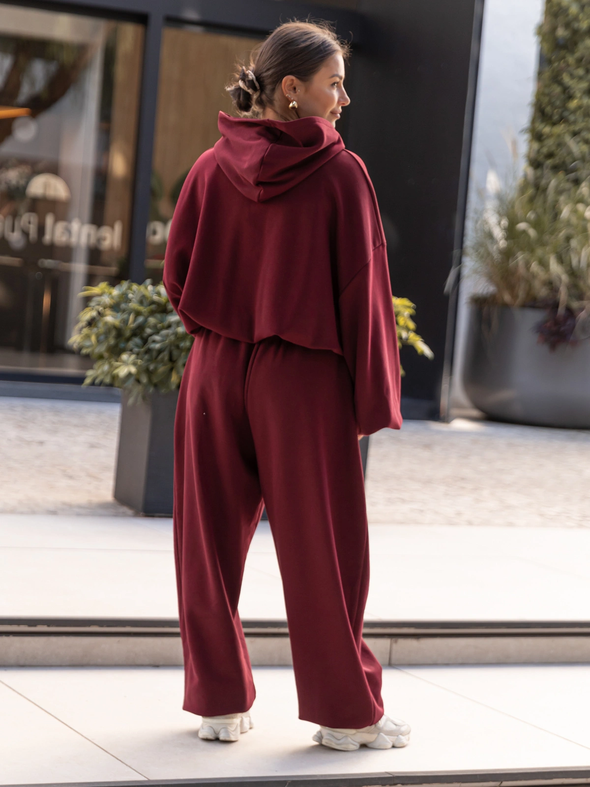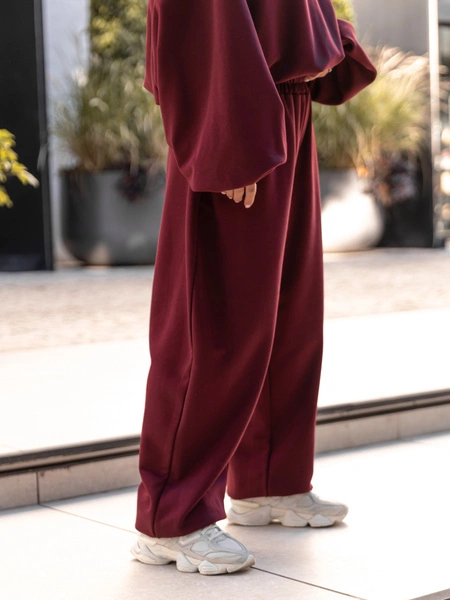 Opinie o Bawełniane dresowe SPODNIE oversize baggy ze ściągaczami z dresówki pętelkowej bordowe X516