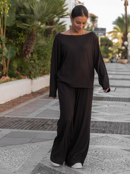ZESTAW z prążkowanej dzianiny: Luźne SPODNIE X507 + Luźna BLUZKA z długim rękawem X506