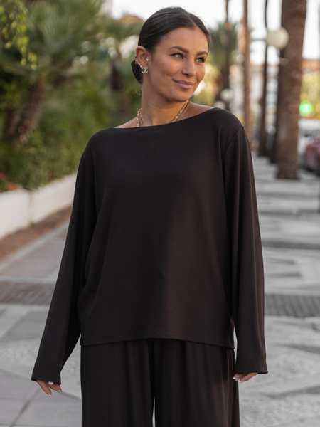 Luźna komfortowa BLUZKA z długim rękawem z prążkowanej dzianiny wiskoza i bawełna beżowa X506Luźna komfortowa BLUZKA z długim rękawem z prążkowanej dzianiny wiskoza i bawełna czekoladowa X506Luźna komfortowa BLUZKA z długim rękawem z prążkowanej dzianiny wiskoza i bawełna bordowa X506Luźna komfortowa BLUZKA z długim rękawem z prążkowanej dzianiny wiskoza i bawełna czarna X506
