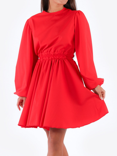 Rozkloszowana sukienka z długim rękawem , z wszytą gumką w pasie.