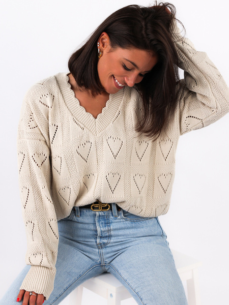 Sweter z dekoltem V , oversize . Wykonany z miękkiej i wygodnej w noszeniu dzianiny swetrowej .