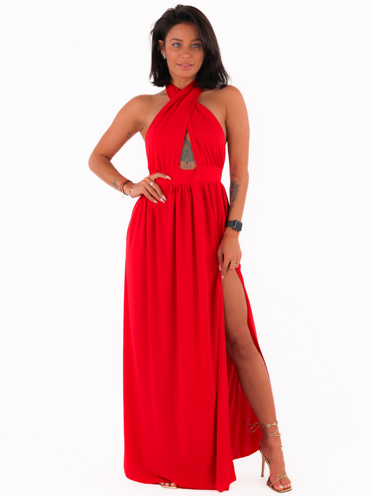 Maxi sukienka z dekoltem typu halter czerwona c306 k01