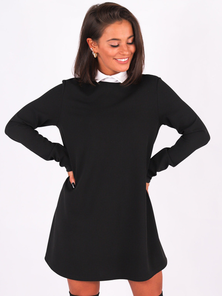 Trapezowa sukienka z kołnierzykiem czarna B267 k01
