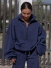 Oversizowa bawełniana BLUZA z dresu drapanego na stójce z zamkiem navy blue X477